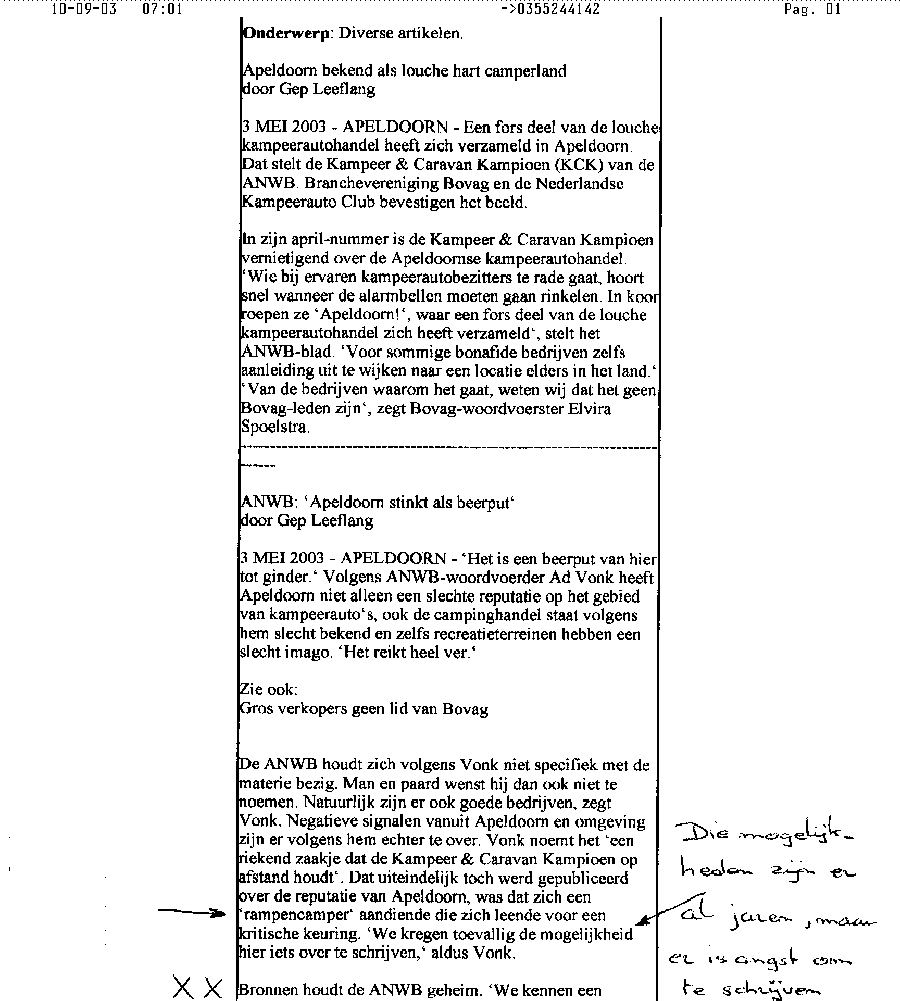 in Apeldoorn stinkt. De leden zijn gewaarschuwd ..!!