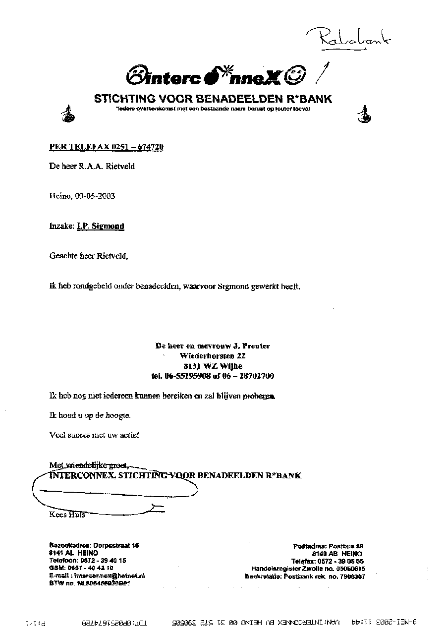 Faxbericht aan mr. Maes van Kees Griesdoorn over schijneisers