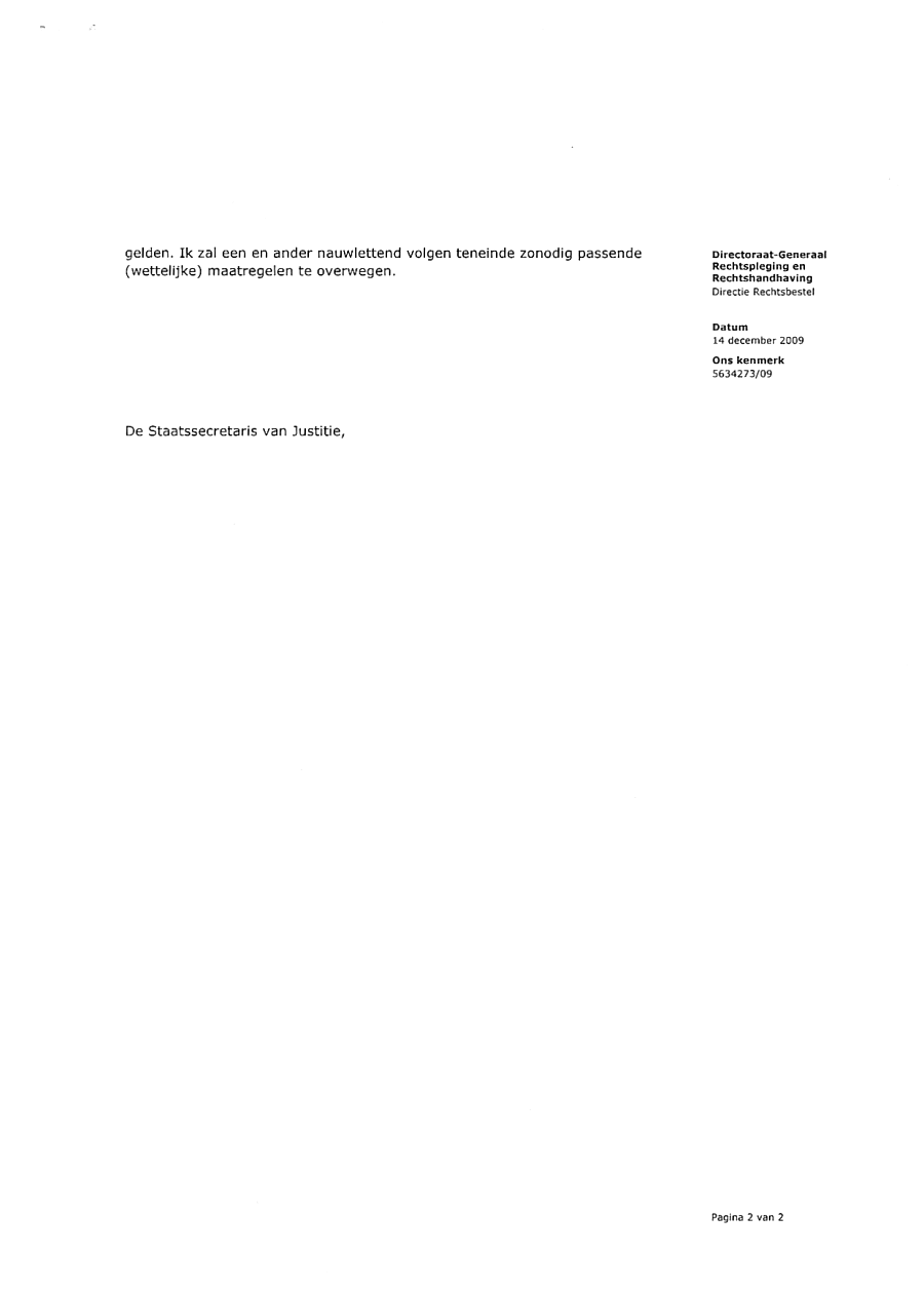 Aan de staatssecretaris van Justitie Mr. N. Albayrak Schedeldoekshaven 100, 2511 EX ’s-Gravenhage