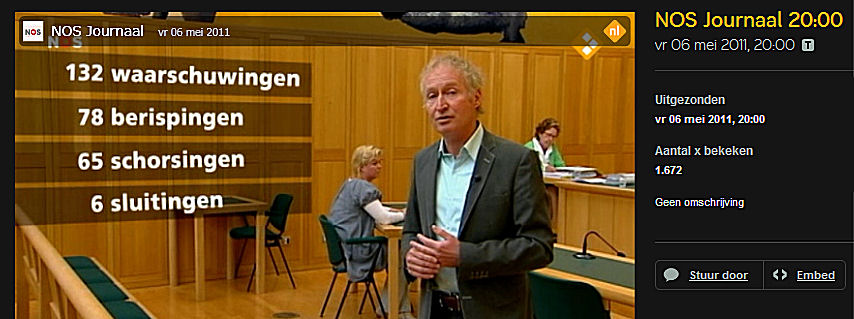 Eindelijk komt de zwendelende advocaat heel langzaam in beeld. De Media durven schoorvoetend iets te melden. Het aantal klachten over het gedrag van advocaten is zeker tien keer zo groot. Los van mensen die het maar laten afweten; dood geprocedeerd. Zie het NOS-journaal, 6 mei 2011, 18.00 u en 20.00 u: vanaf 11 min. 17 sec. Ik mis overigens, gezien het rechter- en raadsheer-plaatsvervangerschap, de veroordeling en schorsing van rechters in de media.