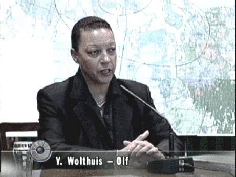 Stenografisch verslag van het openbare verhoor van de parlementaire enquêtecommissie Vliegramp Bijlmermeer op vrijdag 29 januari 1999 in de vergaderzaal van de Eerste Kamer der Staten-Generaal te Den HaagVrijdag 29 januari 1999 Aanvang 14.45 uur Verhoord wordt mevrouw Voorzitter: Th.A.M. Meijer Aanwezig zijn voorts de leden van de commissie: Augusteijn-Esser, Van den Doel, Oedayraj Singh Varma en Oudkerk, alsmede de heer Roovers, griffier, en de heer Voerman, lid van de staf van de commissie. De voorzitter: Aan de orde is het verhoor van mevrouw Y.B. Wolthuis-Olf, geboren op 13 januari 1947 te Amsterdam. mevrouw Wolthuis, ik verzoek u, te gaan staan voor het afleggen van de eed. Ik zweer dat ik de gehele waarheid en niets dan de waarheid zal zeggen. Mevrouw Wolthuis-Olf: Dat beloof ik. De voorzitter: mevrouw Wolthuis-Olf, de enquêtecommissie onderzoekt de toedracht en de gevolgen van de vliegramp op 4 oktober 1992 in de Bijlmer te Amsterdam, met als doel, de waarheid boven tafel te krijgen en te leren voor de toekomst. Laten wij hopen dat die toekomst niet meer zo zal zijn zoals op 4 oktober 1992. U maakte tot 1 januari 1999 namens De Groenen deel uit van de stadsdeelraad Zuidoost. Sinds wanneer was u daarvan lid? Mevrouw Wolthuis-Olf: Sinds het voorjaar van 1991. De voorzitter: Op de avond van de ramp bent u voor het eerst in aanraking gekomen met de gevolgen van de crash. De afgelopen jaren hebt u zich er heel intensief mee beziggehouden. De commissie is met name geïnteresseerd in uw rol als politiek verantwoordelijke via de stadsdeelraad Zuidoost. U heeft in de afgelopen jaren een zwartboek opgesteld. Vanwaar uw betrokkenheid bij deze ramp? Mevrouw Wolthuis-Olf: Die was tweeërlei: als stadsdeelraadslid en uit menselijk oogpunt. Kort na de ramp merkte ik dat er ontzettend chaotische toestanden waren in het Bijlmer-sportcentrum, waar de mensen werden opgevangen. Ik heb de tweede dag na de ramp hand- en spandiensten mogen en kunnen verlenen. De voorzitter: Dat was uw actieve bijdrage op dat moment. Mevrouw Wolthuis-Olf: Inderdaad. De voorzitter: In de loop van de periode erna bent u zich vanuit uw politieke verantwoordelijkheid ook gaan bemoeien met de gevolgen van de ramp. Kunt u ons iets meer vertellen over de eerste keren dat de stadsdeelraad over de ramp sprak? Wat moet ik mij daarbij voorstellen? Mevrouw Wolthuis-Olf: De ramp is vanaf het eerste moment constant onderwerp van gesprek geweest. Heel kort erna, ongeveer zes maanden, namelijk in juli 1993, ben ik begonnen met het stellen van schriftelijke vragen aan het dagelijks bestuur. Ik heb dat gedaan omdat ik zeer ontevreden was over de informatie die werd verstrekt door Den Haag, de gemeente Amsterdam en door ons eigen dagelijks bestuur. De voorzitter: U vond dat u niet alle informatie kreeg die noodzakelijk was om uw functie als stadsdeelraadslid optimaal uit te kunnen oefenen? Mevrouw Wolthuis-Olf: Precies. In een heel vroeg stadium, ik denk eind maart 1993, werd ik door diverse mensen gebeld en benaderd met verschillende klachten over hun gezondheid, ook psychische klachten. Op een gegeven ogenblik werd ik ook benaderd door een aantal ouders die hun kinderen lieten spelen op of in de buurt van een speelplaatsje niet zo ver van de flat Groeneveen. Het viel mij op ik ben daar gaan kijken dat het behoorlijk vervuild was. Ook het watertje voor de flat Groeneveen was ontzettend vervuild. De voorzitter: Op de gezondheidsaspecten zal de heer Oudkerk straks ingaan. Ik ga met u terug naar vlak na de ramp. Waren de verantwoordelijkheden van de stadsdeelraad u duidelijk? Mevrouw Wolthuis-Olf: Die vond ik erg onduidelijk. Juist die onduidelijkheid bracht bewoners mijn kant op. Men begreep vaak niet wat er allemaal precies gebeurde, wat zij allemaal precies moesten doen en wat zij te verwachten hadden. Veel informatie was bijvoorbeeld niet in het Engels gesteld. Men kon dan ook vaak dingen niet lezen en begrijpen. De voorzitter: U bent lid van de stadsdeelraad. Ik kan mij voorstellen dat u de eerste de beste keer dat u bij elkaar komt na de ramp de centrale vraag stelt: wat moeten wij doen, wat moeten de gemeente Amsterdam, Den Haag en de provincie Noord-Holland doen? Waren de bevoegdheden, verantwoordelijkheden en taken van de stadsdeelraad onmiddellijk bekend toen hij de eerste keer vlak na de ramp bijeenkwam? Is daarover gesproken? Mevrouw Wolthuis-Olf: Nee, dat is nooit echt... De voorzitter: Waarom niet? Mevrouw Wolthuis-Olf: Dat is een heel goede vraag. De voorzitter: Wat is naar uw mening de taak van de stadsdeelraad, zo dicht bij de basis, als een dergelijke ramp zich voordoet? Mevrouw Wolthuis-Olf: Ik heb mij altijd voorgesteld dat de taak ervan is, zoveel mogelijk toezicht te houden op het dagelijks bestuur, maar ook dingen aandragen. Dingen die ik, mijn fractie ik vormde een eenvrouwsfractie aandroeg, werden vaak van tafel geveegd. Men luisterde niet naar wat ik te vertellen had. De voorzitter: Waarom niet? Mevrouw Wolthuis-Olf: Ik denk dat men mij ontzettend lastig heeft gevonden en dat men zich bijzonder heeft geërgerd aan de vragen die ik altijd heb gesteld. De voorzitter: Waren die vragen niet normaal? Mevrouw Wolthuis-Olf: Naar mijn bescheiden mening waren dat zeer normale vragen. De voorzitter: Zoals? Mevrouw Wolthuis-Olf: Als ik bijvoorbeeld vroeg of het wel zo verstandig is om het speelplaatsje open te houden en of het niet verstandig is om het watertje voor Groeneveen te laten onderzoeken op chloorhoudende rommeltjes enzovoorts, dan werd daar niet op gereageerd. Ik heb toen ook besloten om al mijn vragen voortaan schriftelijk te stellen, want dan moet men wel op een behoorlijke manier antwoord geven. De voorzitter: Hoe sprak men in de stadsdeelraad over deze ramp? Mevrouw Wolthuis-Olf: Het was natuurlijk altijd ach en wee, verdrietig. Maar het ging mij erom dat het mensen betrof. Daar werd niet over nagedacht. Er werd niet over mensen nagedacht. De voorzitter: Waar werd wel over nagedacht? Mevrouw Wolthuis-Olf: Ik w