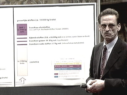 Een jaar later heb ik op verzoek van de RLD nog eens een rapport gemaakt. Na de ramp is er mondeling gerapporteerd aan de heer Visser. Een jaar later vroeg hij mij om mijn rol nog eens op papier te zetten. Dat ging over mijn rol op de vierde en vijfde oktober 1992. Daarna is mij nog eens gevraagd de periode 1993 t/m vorig de zaken te overdenken. Mijn deskundigheid strekt zich uit tot de gevaarlijke stoffen. inclusief de cosmetica. Stoffen die op de grond terechtkomen - niet mijn vakgebied - en in een brand terecht komen, met name kunststoffen, kunnen giftig dampen veroorzaken. In elektronica zitten stoffen die ook gevaarlijke dampen kunnen opleveren in een brand. De ICAO-gevarenklassedefinitie is dat stoffen die gevaarlijk kunnen zijn voor mens dier en voor het vliegtuig een gevaar kunnen opleveren tijdens de vlucht als zodanig gekenmerkt en verpakt moeten zijn. Het is altijd mogelijk dat zendingen niet goed verpakt zijn of geclassificeerd. De notoc vanuit New York naar Tel Aviv besloeg vier pagina's en ICAO-technisch zijn de brandbare vloeistoffen ingedeeld in klasse drie voor verpakking. Voor de meeste stoffen kennen we diverse verpakkingsgroepen. In klasse 2 vallen bijvoorbeeld spuitbussen met brandbare stoffen. Maar ook nafta of koolwaterstofverbindingen, zoals benzine of dieselolie. Spuitbussen met haarlak bijvoorbeeld bevatten brandbaar gas. Verf brand ook en valt in klasse 3. Lijm valt in klasse 4. Nafta is een koolwaterstof maar ook alcohol is dat, enz. enz. Op blz. 4 worden spuitbussen en bijtende vloeistoffen vermeld. Van al deze stoffen heb ik - ook later - gezegd dat het voor de mannen van de rampbestrijding geen extra gevaar opleverde. In de brand zullen die stoffen geen rare reactie veroorzaken. Het DMMP-chemicalie zat in de lading en is geclassificeerd als een brandbare vloeistof en valt in klasse 3, en is een minder gevaarlijke vloeistof. Ik weet niet of er een relatie gelegde kan worden met zenuwgassen. Mijn deskundigheid houdt daar op. Genitreerde cellulose is een bestanddeel van o.a. buskruit. Met alcohol is het een brandbare vaste stof. Het verliest echter zijn explosieve eigenschap wanneer het verzadigd wordt met alcohol. Het wordt door een overmaat aan alcohol gestabiliseerd. Het valt in klasse drie voor verpakking. Explosieve stoffen worden altijd vermeld op de notoc in een bepaalde klasse. Maar in de lading waren die op de notoc niet aanwezig. In een vliegtuig zit veel kunststof maar ook in de niet-gevaarlijk lading kan in een brand de rook een vreemde kleur geven. ICAO-regels beschrijven de inhoud en niet de verpakking. Voor de volksgezondheid speelt wat Dangerous Goods betreft alleen de ICAO-regels een rol. Ik ben een weekend bezig geweest met het lezen van de airway-bills om te onderzoeken of er alsnog gevaarlijke stoffen in zouden zitten die nog niet als zodanig herkend werden. Mijn ervaringen met El Al zijn dat het net als alle andere maatschappijen op Schiphol regelmatig gecontroleerd werd op het vervoer van gevaarlijke stoffen. Dat deden wij samen met de Rijkspolitie voor de Luchtvaart. Die controles beperkten zich tot de vracht, ook voor passagiersvliegtuigen en ik kwam dus in alle loodsen waar vracht werd afgehandeld. Tussen 1983 en 1988 zijn er wel voorvallen geweest dat de verpakking niet helemaal klopte, ook bij El Al. Etiketten ontbraken soms. Het gebeurde soms dat de afzenders opzettelijk geen vermelding maakten van de gevaarlijkheid van de inhoud. De vliegmaatschappij trof daarbij meestal geen schuld. Maar fouten worden overal gemaakt, maar daar hebben we het hier niet over. Het aangeven van gevaarlijke stoffen heeft tot gevolg dat het vervoerstarief hoger is en dan pleeg je als leverancier fraude door om economische redenen niet aan te geven dat het gevaarlijke stoffen zijn. De controle houdt niet in dat we alles openmaken. Voor de El Al vlucht van 4 oktober heb ik geen aanwijzing dat er iets in de lading zat wat niet vermeld was op de notocs. Ik vermoed dat er soms gesjoemeld wordt met de classificatie. Het is niet de vliegmaatschappij die dat doet maar de afzender. De luchtvaartmaatschappijen gaan er altijd zeer verantwoord mee om. Iedere zending met gevaarlijke stoffen moet met een checklist worden afgewerkt. Alles gaat volgens de wettelijke verplichting om te controleren of en dat wat er op de lijst staat ook werkelijk in de verpakking zit. Na de ramp is er nooit een vraag geweest over de inhoud van de lading. De stof DMMP en nog twee andere stoffen waren aan boord om het zenuwgas 'Sarin' te kunnen maken. Ik heb er later pas van gehoord. ICAO-technisch gezien valt het niet in de klasse giftige stoffen. Voor Sarin zijn vier stoffen nodig. Deskundigheid om hierover iets te kunnen zeggen is te vinden bij het Prins Maurits laboratorium. Het sarin-verhaal was als gevaarlijke stof hier niet van toepassing, behalve dat het past in de ICAO-regels. Op het moment van vertrek vanuit Amsterdam waren er officieel geen explosieven aan boord. Maar een getuige ontdekte kennelijk een kist met munitiepatronen. Het kan een niet-ontplofbare vorm van munitie zijn geweest. Alleen wanneer het een slaghoedje of kruit bevat dan moet het op de notoc als zodanig worden gemerkt. Inerte munitie wordt ook vervoerd voor oefeningen bijvoorbeeld. Voor mij is slechts van belang of de zending echt een ontplofbare stof bevat. Bij onzekerheid kijken we dat na. Er zijn drie verpakkingsgroepen 1 is die van de gevaarlijkste stoffen.