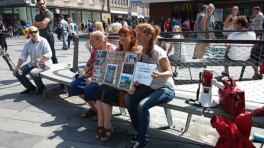 Op 18 juli 2015 was in Eindhoven een demonstratie van Break The System waarvan hieronder enkele foto's. Eindelijk lijkt het er op dat kritische clubs gaan samenwerken om de afbraak van de sociale bescherming op de politieke agenda te krijgen, waarover alle leden van de Tweede Kamer in koor heel diep zwijgen. Van rechts tot links kijkt men de andere kant uit, ondanks de huisuitzetting van dertig gezinnen per dag, en de zelfdodingen van ca. 500 mensen in nood per jaar, die vluchten voor het geweld van het zogenaamde rechtssysteem. Houdt deze pagina in het oog m.b.t. tot spraakmakende openbaarmakingen, zoals het verzoek aan alle Kamerleden individueel om de motie Merkies in het Kamerdebat in te dienen, wat nog steeds niet is gebeurd. De massamedia sjokken daar later dan pas achteraan. Demonstraties als die van Break The System zijn voor de politiek en de overheid geen enkel gevaar, zoals de eeuwenlange ervaring leert. Het samenspel tussen het stadsbestuur, de Haagse politiek en de media, gecoacht door de ME, AIVD, PID en MIVD, zorgen voor binnenlands bestuurlijke rust. Daarom blijft het rond de nieuwe WW-wet ook zo stil.