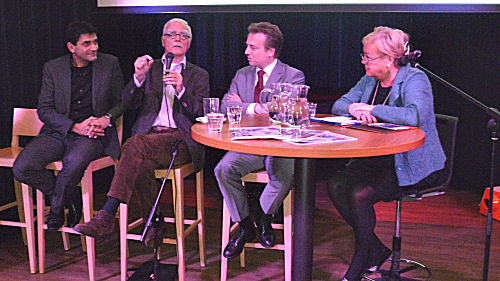 Viola Holt leidde de discussie in het politiek Café over de Griekse Tragedie met Nico Wegter en Arnold Merkies