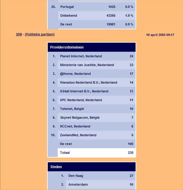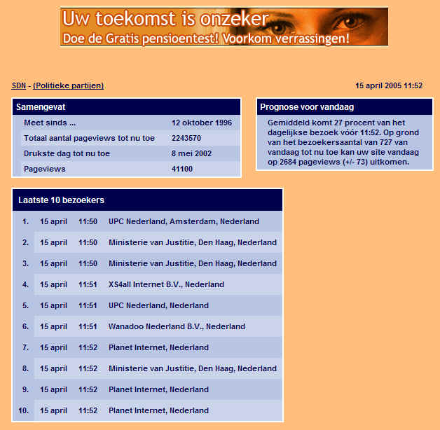 Op 15 april 2005 zag ik dat uw ministerie weer druk bezoek bracht aan de website van de SDN. Verbazingwekkend is dat niet, maar wel het oorverdovende zwijgen over zaken die daarop te zien zijn.