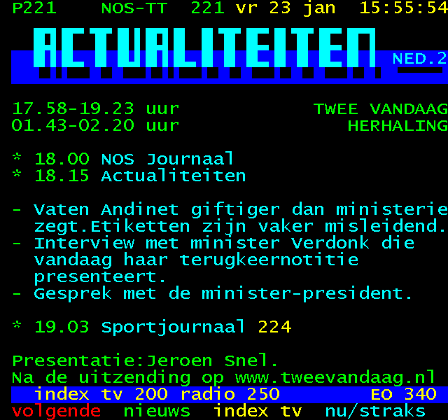 In de Twee Vandaag uitzending op 23 januari 2004 heeft Marijke Vos van Groen Links tegenover 16 miljoen Nederlanders verklaard dat die foutieve etikettering op de vaten bij haar niet bekend was. Dit terwijl ik al drie jaar geleden bij brief van 13 april 2001 alle 150 Tweede Kamerleden en alle 75 Eerste Kamerleden daarover heb geïnformeerd. (Zie de video van die uitzending op televisie op www.sdnl.nl/video/wolmanzouten-2.wmv).
