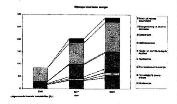 Doelstelling bijdrage Duurzame energie voor de jaren 2000 -83 PJ, 2007-204 PJ en 2020-288 PJ