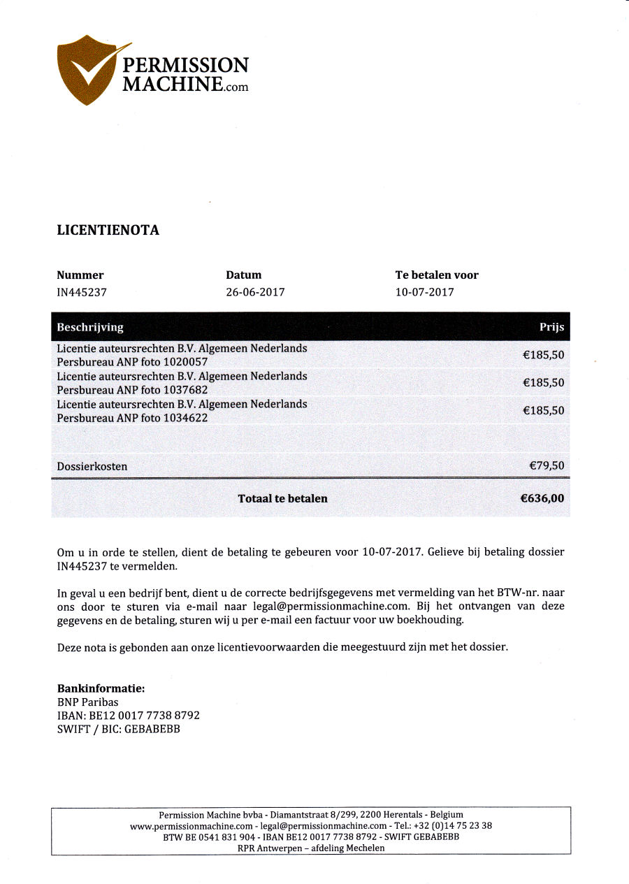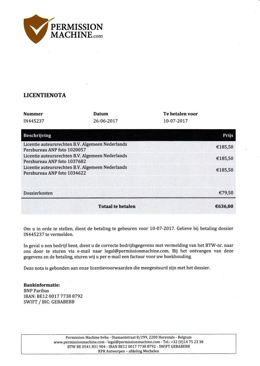 Zoals u weet maakte onze advocate ernstig bezwaar tegen de berekening van uw kosten die u als proceskosten hebt opgevoerd. De rechter die uw eis integraal had overgenomen en toegewezen had kennelijk niet begrepen dat het door u of uw clint urenlang zoeken op internet naar een mogelijke inbreuk niet toe te rekenen is aan een gedaagde. Nog los van het feit dat u niet kon aantonen in welke krant de foto was geplaatst en bovendien dat u in eerste instantie uw claim inbracht met een andere foto dan die in de Telegraaf was afgedrukt.