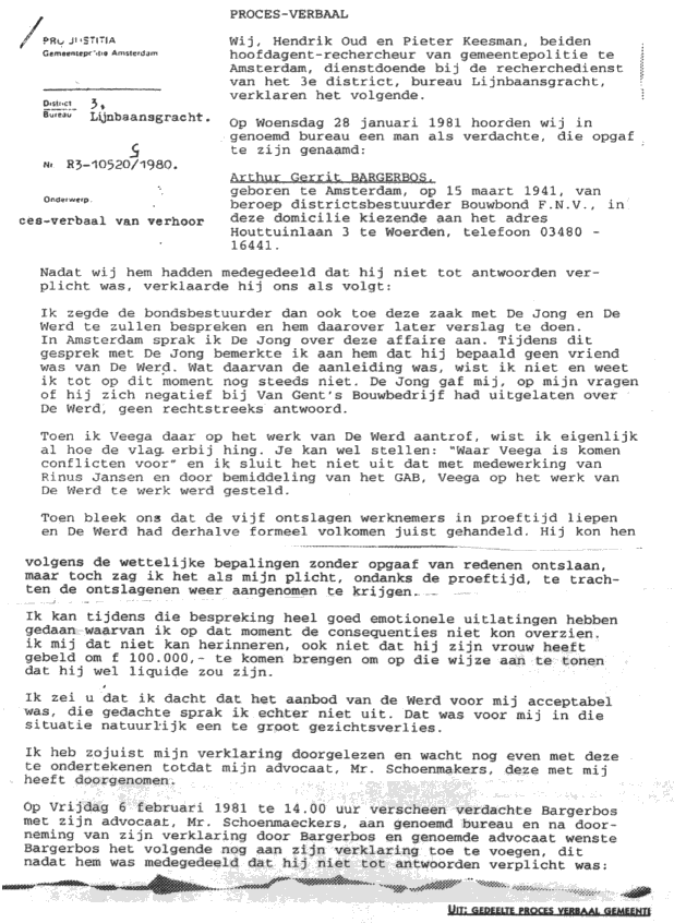 Voorts ben ik dank verschuldigd aan de rechercheurs Hendrik Oud en Pieter Keesman, beiden werkzaam bij de Gemeente politie Amsterdam, daar zij ondanks alles, hun ambtseed hoog in het vaandel wisten te houden, door ter zake in hun proces-verbaal van Verhoor Nr. R3-10520/1980, de gehele waarheid boven water wisten te houden, maar ook voor de morele steun aan mijn geliefde vrouw Wil tijdens de terminale fase van haar leven, het was voor mij hartverwarmend om tijdens één van mijn vele bezoeken aan haar ziekbed een prachtig bloemstuk aan te treffen waarvoor de boys aan de Lijnbaansgracht, onderling hadden gelapt.