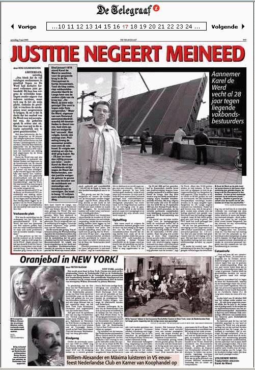 Op grond van de valse verklaringen over de beslaglegging heeft het Gerechtshof beslist dat ik slechts recht had op een geringe schadevergoeding, zegt De Werd. In de jaren '80 leidde dat er toe dat de vakbonden fl. 90.000 uitbetaalden, maar dat