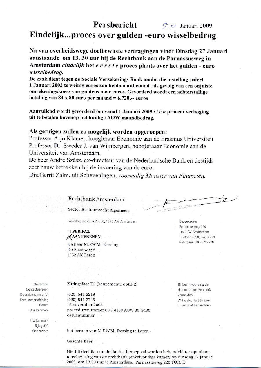 Procesverbaal van aangifte door Martin Dessing tegen de minster van Financiën drs. G. Zalm