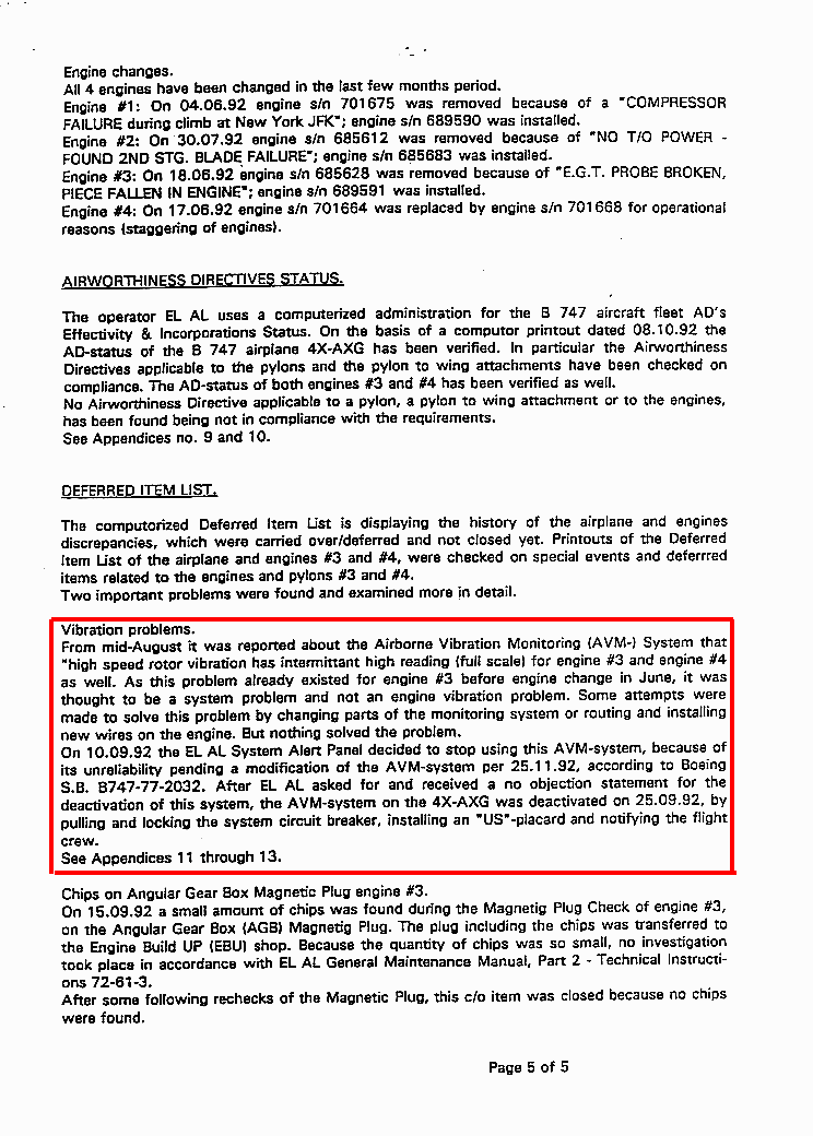 (02-02) Bladzijde uit het rapport van RLD-medewerker H. van Klaveren, gedateerd 26 oktober 1992 over het technisch onderhoud aan de 4X-AXG, met daarin onder meer de vermelding dat het vibratie-waarschuwings-systeem uitgeschakeld stond. ___________________________________________________________________________________________