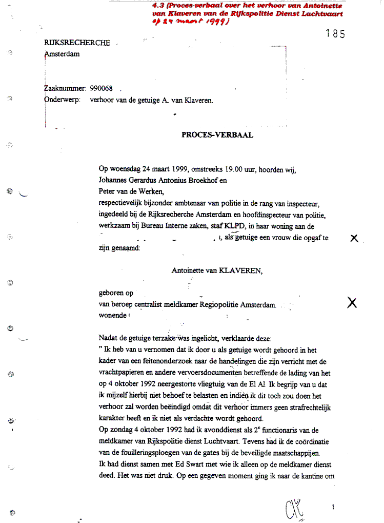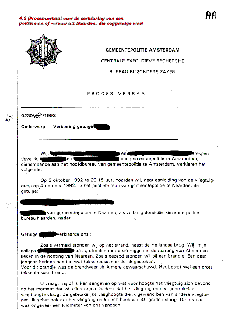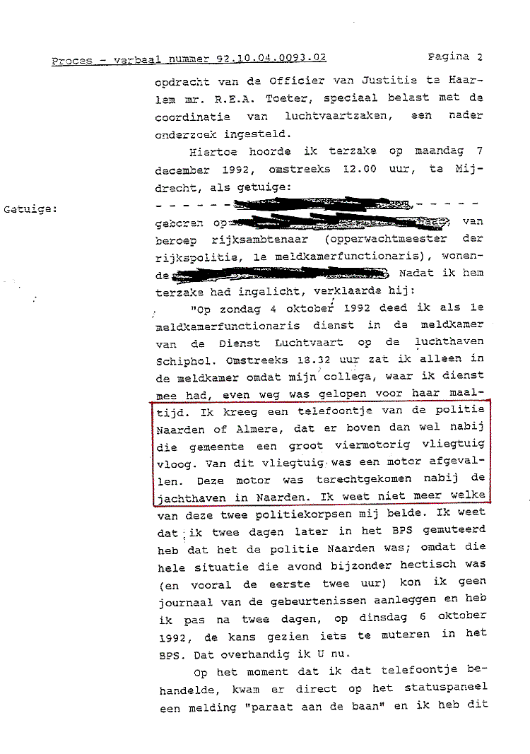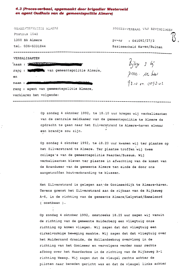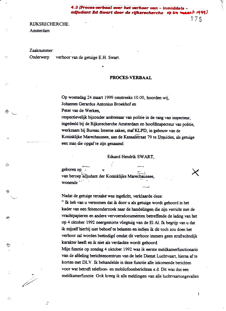 (04-03) Proces-verbaal van het verhoor van wachtmeester Ed Swart van de Rijkspolitie Dienst Luchtvaart op 7 december 1992.
