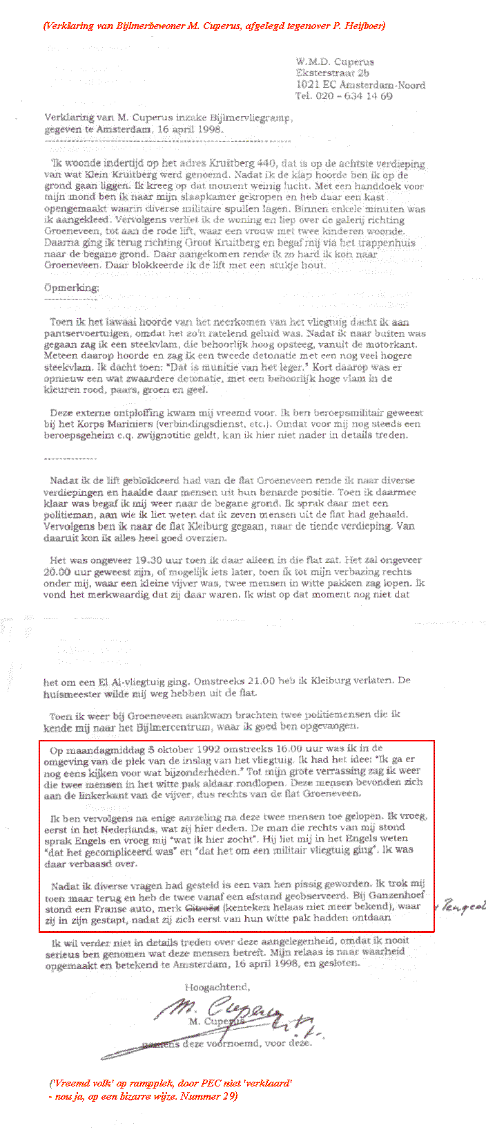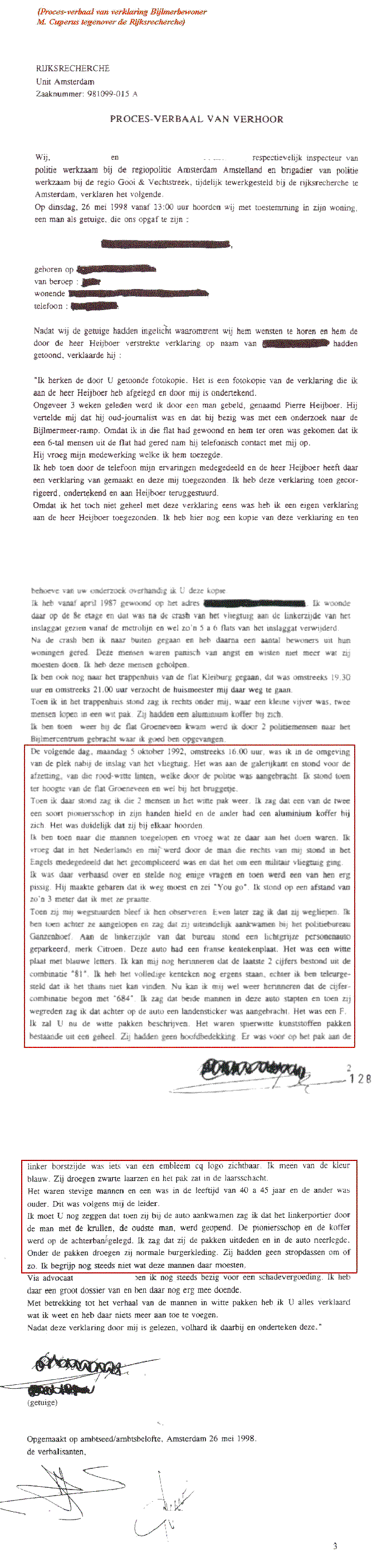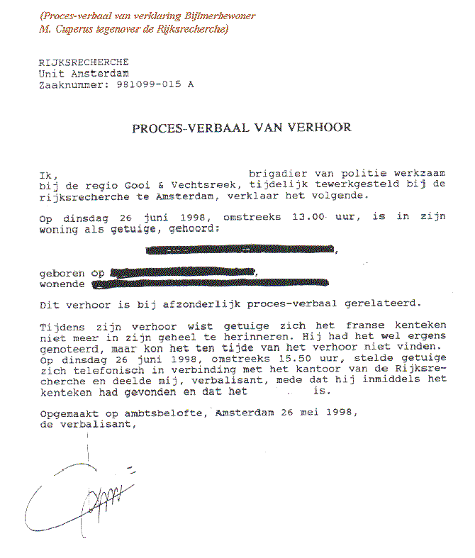 Verklaring van André Bos tegenover Pierre Heijboer, op 11