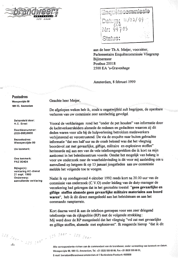 Gesprek brandweer Amsterdam om ongeveer negen