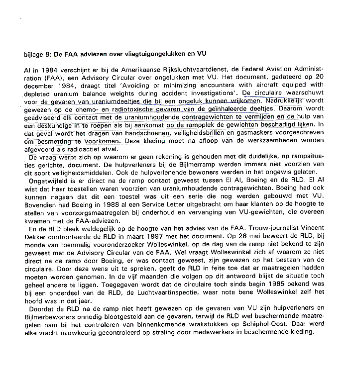 (14-07) Fragment uit een rapport van het documentatiecentrum LAKA, waarin de waarschuwing vermeld wordt die de Ameriaanse FAA deed uitgaan - ook aan de RLD - naar aanleiding van de aanwezigheid van verarmd uranium in vliegtuigen. __________________________________________________________________________________