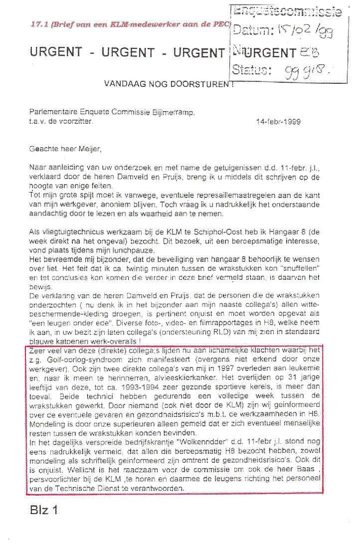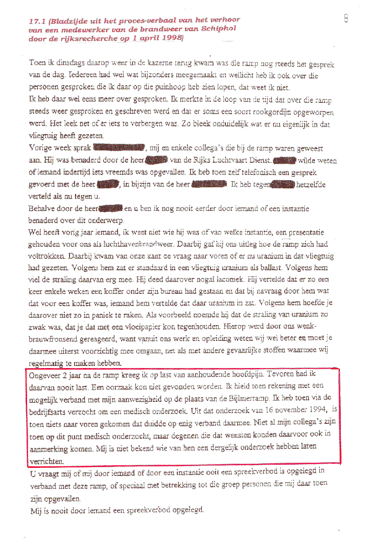 sprake van mogelijke stralingsgevaar. In hoeverre dat de collega's