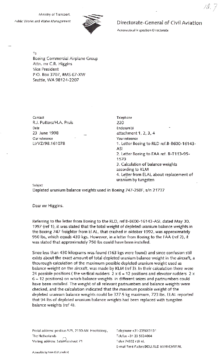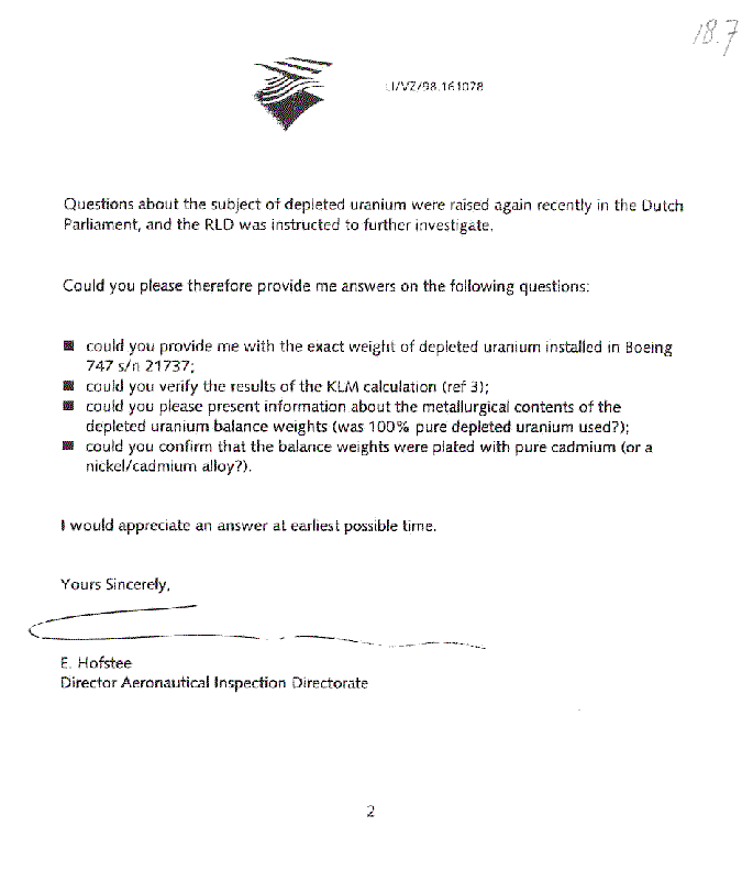 vrijkomen van verarmd uranium bij Bijlmerramp