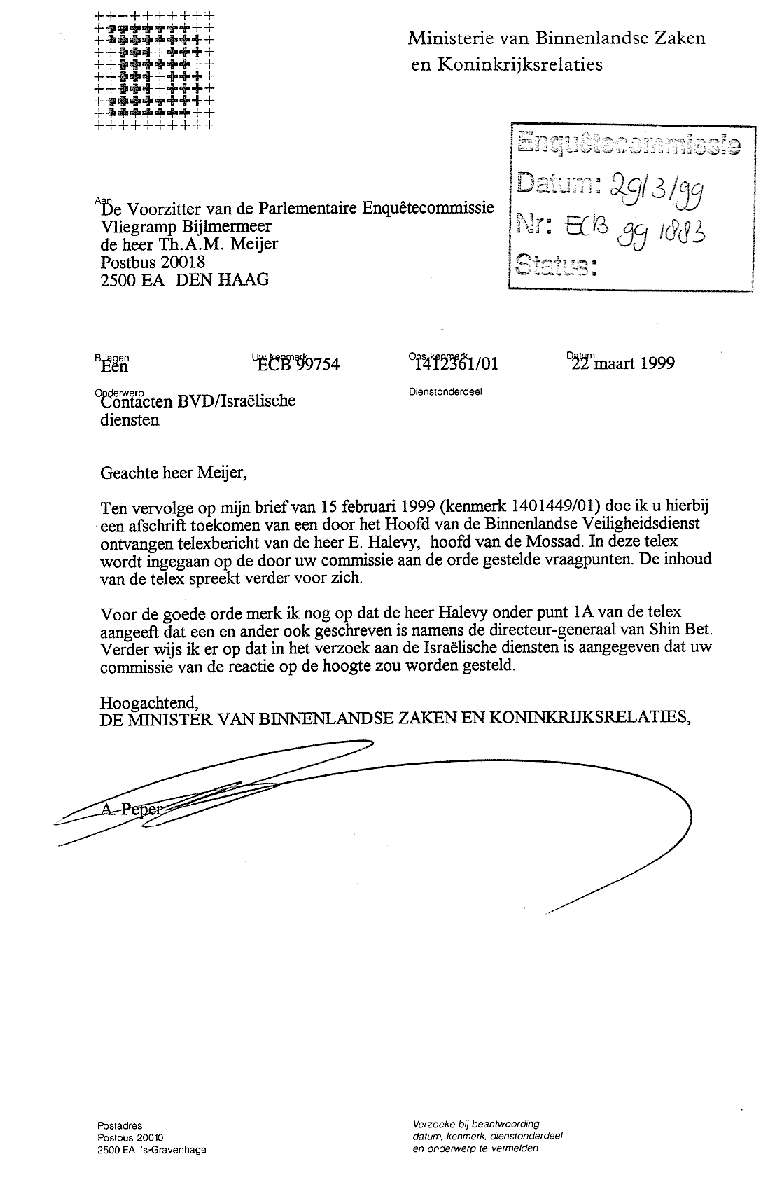 het hoofd van de BVD, S. van Hulst, naar aanleiding van vragen,