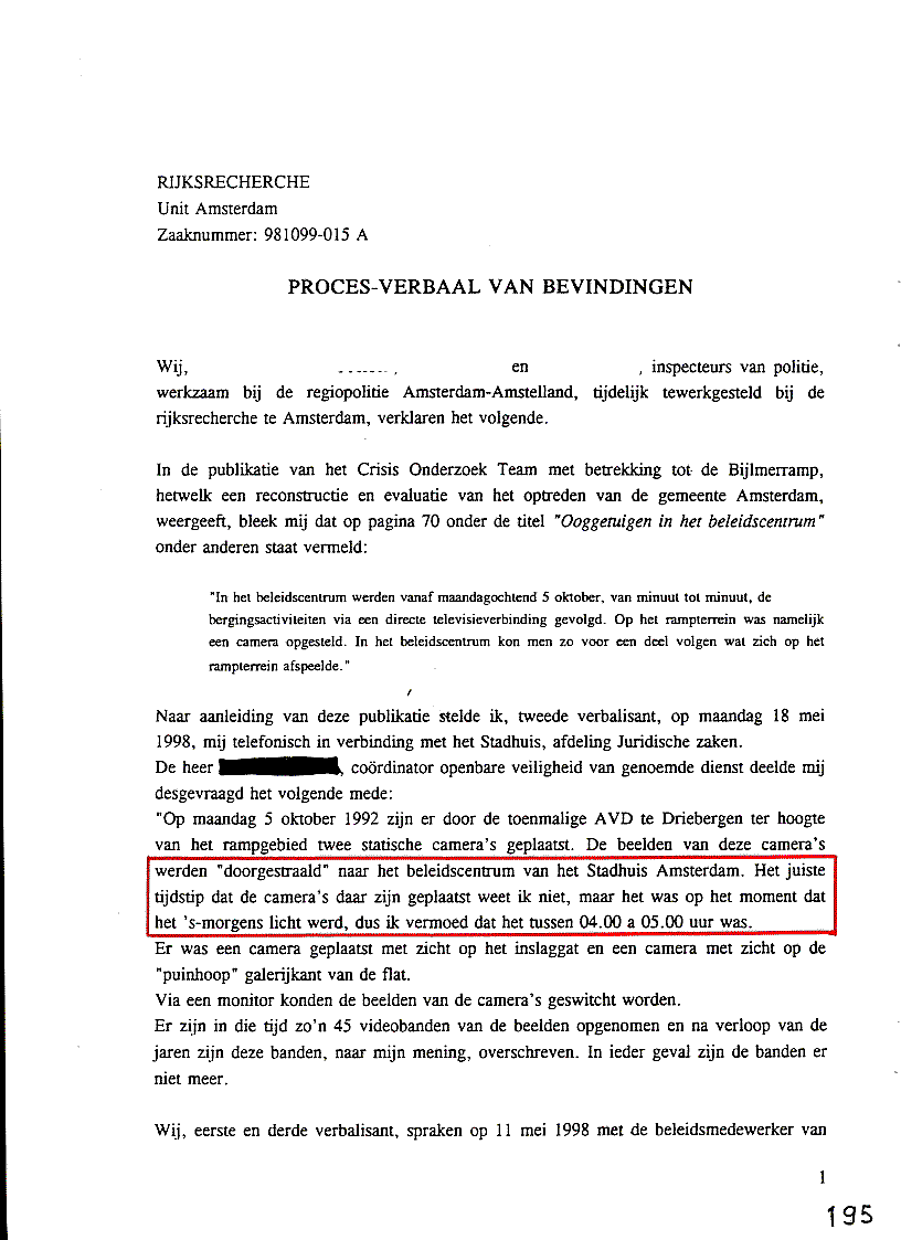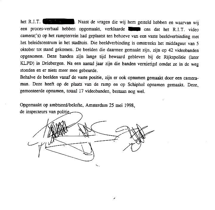 (23-03) Proces-verbaal over een verhoor van stadhuis-medewerker Kollmers, over het moment waarop er een camera-verbinding was met de rampplek.