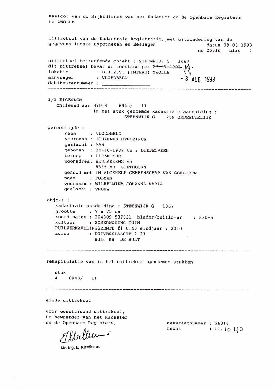 Zes advocaten, FIOD, Justitie en VROM-inspectie Arnhem zijn met deze gevoelige zaak bezig om de onderste steen boven te krijgen. Miljoenen zijn er mee gemoeid. Met name burgemeester Hayo Apotheker bevindt zich in een zeer hachelijke positie, omdat hij als minister van Landbouw Visserij en Milieubeheer een half miljoen gulden (!) subsidie verleende aan Jonkheer Mr. Dr. H.A. van Karnebeek voor het bouwen van een loods op zijn 200 hectaren groot landgoed, om daarin lelieproducten te verwerken voor de export. video ..!!