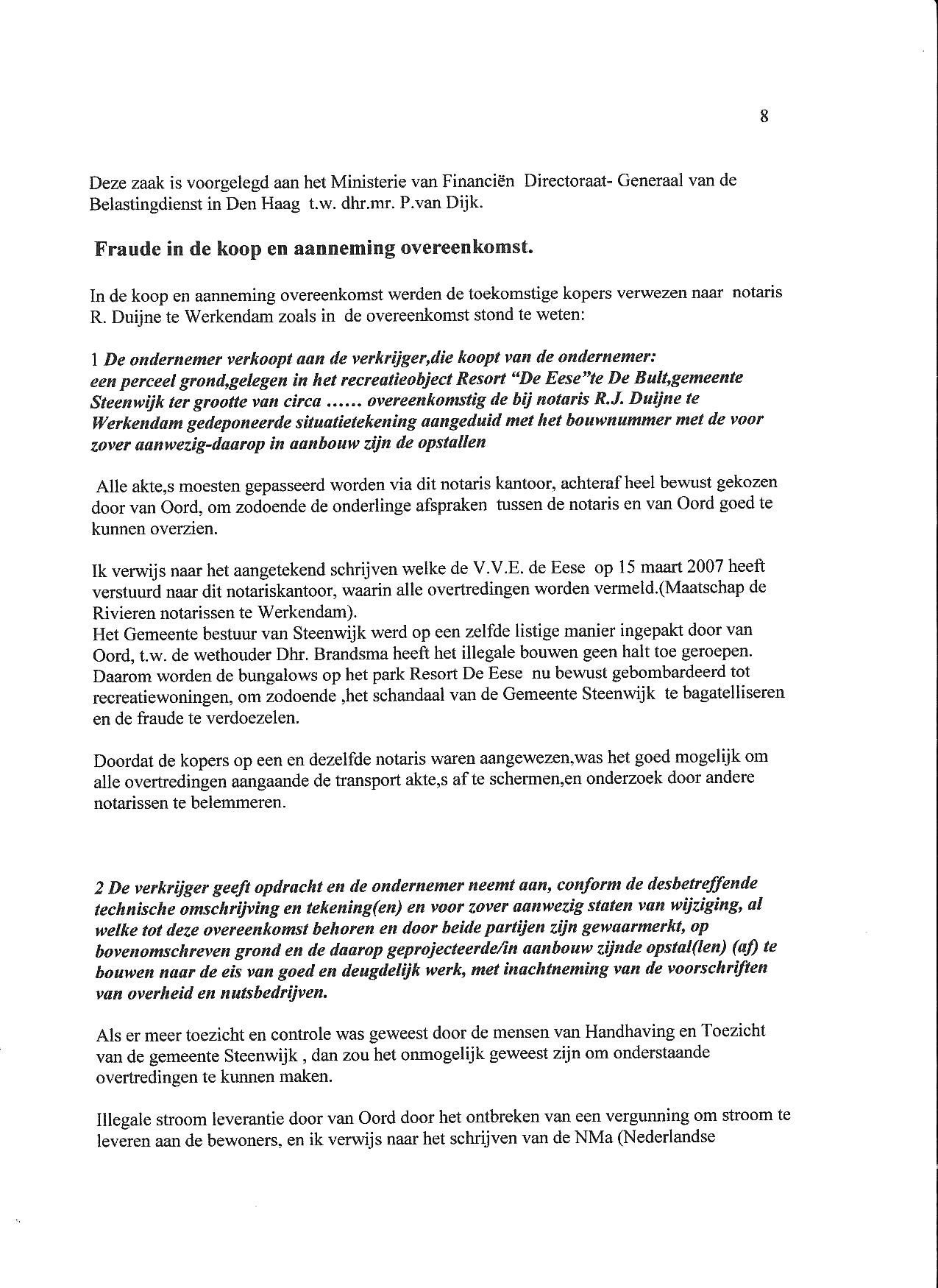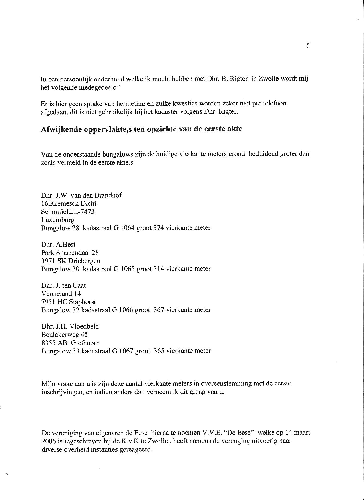 Brief aan notariskantoor De Rivieren in Werkendam over illegale bouw van bungalows op park De Eese in Steenwijk