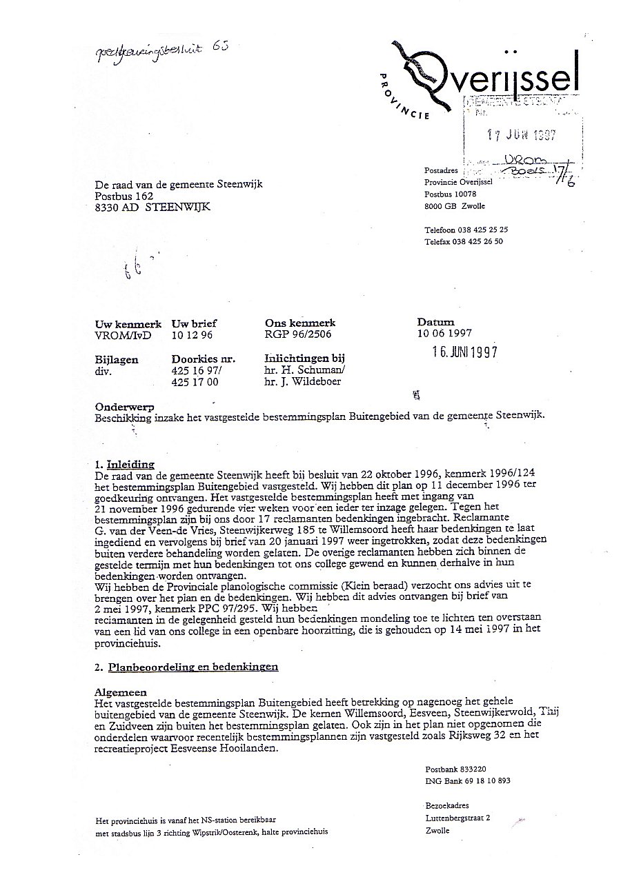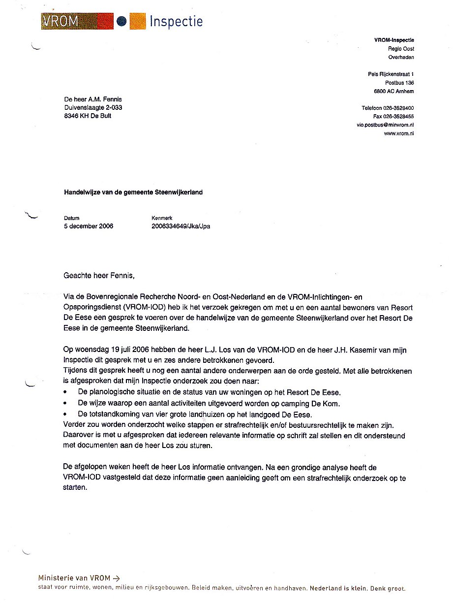 Zes advocaten, FIOD, Justitie en VROM-inspectie Arnhem zijn met deze gevoelige zaak bezig om de onderste steen boven te krijgen. Miljoenen zijn er mee gemoeid. Met name burgemeester Hayo Apotheker bevindt zich in een hachelijke positie, omdat hij als minister van Landbouw, Visserij en Milieubeheer een half miljoen gulden (!) subsidie verleende aan Jonkheer Mr. Dr. H.A. van Karnebeek (honorair kamerheer van de koningin) voor het bouwen van een loods op zijn 200 hectaren groot landgoed, om daarin lelieproducten te verwerken voor export. Klik voor het video-verslag !!