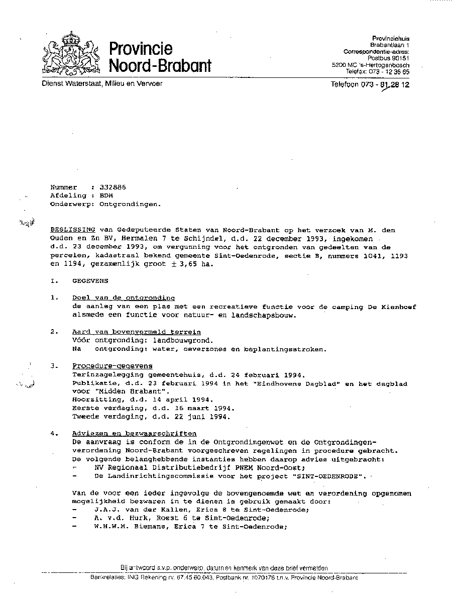 Falende handhaving van Gedeputeerde Staten van Noord-Brabant