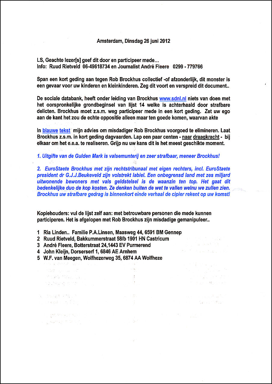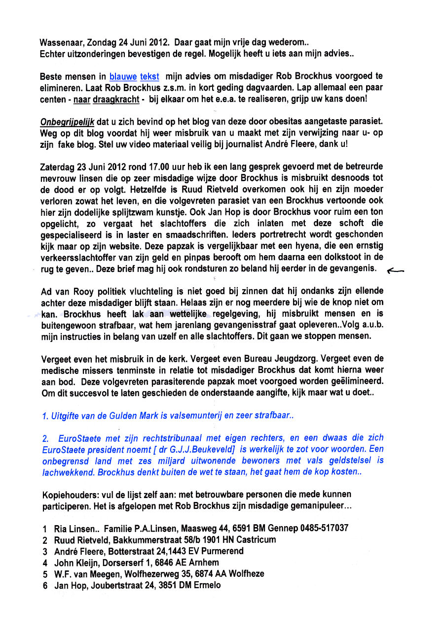 februari 2012: Brief aan officier van justitie M. Groothuizen