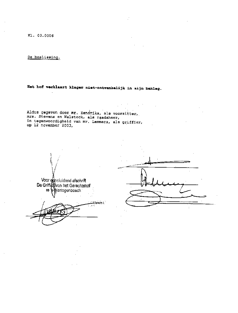 beslissing van 25 februari 2003 waarbij het verzoek van indieners is afgewezen,