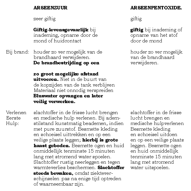 1.3 Het betreffende water bevatte maar liefst 1200 µg/l arseen, 710 µg/l chroom en 1500 µg/l koper. Deze concentraties in regenwater zijn normaal 0 tot 1,5 µg/l arseen, 0 tot 1 µg/l chroom, 0,6 tot 12 µg/l koper. Bij gehalten boven de interventiewaarde is er sprake van een wettelijk gedefinieerde verontreiniging en levensgevaar. De interventiewaarden zijn: arseen 60 µg/l, chroom 30 µg/l en koper 75 µg/l. De gevonden concentraties gaan deze interventiewaarden voor wat betreft arseen 20 maal, chroom 23 maal en koper 20 maal te boven. 8) Dit is al 3 ½ jaar lang bekend bij ing. C. Boon, voorzitter van de Vereniging voor Houtimpregneerinrichtingen in Nederland (VHN). Ondanks deze wetenschap liegt hij hierover alle Nederlanders via media, radio, TV en internet nog steeds voor. Het uitlogende arseen is arseenzuur en derhalve levensgevaarlijk. Elke aanraking met de huid, hoe gering ook, moet worden voorkomen 10). Een verplichte Europese risicobeoordeling zal uitwijzen dat al dit gewolmaniseerde hout dat in kontact kan komen met oppervlaktewater, regenwater of bluswater in geval van brand, onmiddellijk dient te worden verwijderd en droog en brandveilig moet worden opgeslagen. 1.4 In geval een huis, schuur of schutting waarin gewolmaniseerd hout zit verwerkt in brand opgaat dan hebben we te maken met een ongecontroleerde verbranding waarbij ca. 50% van het arseen in de lucht terecht komt, nagenoeg volledig in deeltjes, waarvan de massadiameter varieert tussen ca. 0,3 en 3 µm, waarvan 85 % beneden 1 µm is en als zodanig tot de fijnste aërosolfractie behoort 9). Deze zeer fijne deeltjes dringen gemakkelijk door tot in het diepste van de longblaasjes hetgeen levensgevaarlijk is. In geval van regenweer of blussen met water vormt zich arseenzuur dat ook nog via de huid het lichaam binnendringt 10). Arseenzuur valt in de zwaarste klasse, de klasse 1, van kankerverwekkende stoffen 11)12). Arseenzuur is ook verdacht reprotoxisch, hetgeen inhoudt dat het toxische effecten op de reproductiefunctie van vrouwen en/of mannen (o.a. impotentie, fertiliteitsproblemen, menstruatiestoornissen, testiskanker) en/of toxische effecten op het geslacht via vrouwen en/of mannen (o.a. miskramen, ontwikkelingsstoornissen, doodgeboorte) als gevolg kan hebben 13). Arseenzuur is ook een zwarte lijststof. In internationaal verband is besloten dat in het milieu brengen van zwarte lijststoffen gezien hun stofeigenschappen, zoals giftigheid - waaronder carcinogeniteit, mutageniteit en teratogeniteit - afbreekbaarheid en (bio)accumulatie, die een ernstig risico inhouden, via een maximaal brongerichte aanpak met de best bestaande techniek dient te worden voorkomen 14). 1.5 In Nederland wordt jaarlijks tussen de 750.000 en 950.000 m3 hout gewolmaniseerd. Per m3 wordt zo'n 7 kg. Superwolmanzout-Co ingebracht 15). 1 liter Superwolmanzout-Co weegt 1,75 kg. 1). Er worden dus 4 liters per m3 ingebracht. 1 liter Superwolmanzout-Co bevat 374 gram arseenzuur, 532 gram chroomtrioxide en 188 gram koperIIoxide. 1 m3 gewolmaniseerd hout bevat dus 1,5 kg. arseenzuur, 2,1 kg. chroomtrioxide en 0,8 kg. koperIIoxide. Zo'n 40% van de 900.000 m3 hout is geïmpregneerd met impregneermiddelen op basis van arseen, chroom VI en koper (CCA-hout) 15). Uitgaande van die 40% CCA-hout komt dat neer op een jaarlijkse dumping van 540.000 kg. arseenzuur in Nederland. Ook in België, Engeland en mogelijk nog andere EU-lidstaten dumpt Hickson Garantor op soortgelijke wijze enorme hoeveelheden arseenzuur zonder een verplichte risicobeoordeling. 1.6 1 m3 geïmpregneerd hout bevat 1,5 kg. arseenzuur (H3AsO4), hetgeen 795 gram arseen bevat. Dit vergiftigt ruim 13 miljoen liter water met arseen boven de interventiewaarde. Dezelfde m3 geïmpregneerd hout bevat ook nog 2,1 kg. chroomtrioxide (CrO3) hetgeen 1092 gram chroom VI bevat. Dit vergiftigt ruim 36 miljoen liter water met chroom VI boven de interventiewaarde. Op dit moment staat in Nederland nog zo'n 8.000.000 m3 van dergelijk gewolmaniseerd hout uit 14). Als gevolg van deze opzettelijke foutieve etikettering heeft Hickson Garantor B.V., zonder een daarvoor vereist Europees veiligheidsrapport, vanuit Nederland ook grote delen van West Europa kunnen vergiftigen met miljoenen kilogrammen arseenzuur in gewolmaniseerd hout. Met name in Engeland en België is Hickson Garantor B.V. ook zeer actief. Zo'n 25% van dit goed in water oplosbaar arseenzuur en chroomtrioxide trekt op termijn de grond in en verontreinigt het grondwater en later het drinkwater. Zo'n 75% van betreffend arseenzuur en chroomtrioxide in de vele miljoenen m3 gewolmaniseerd hout, die in Nederland en West Europa nog uitstaan, komen via de Rijn en de Maas in opgeloste vorm in de Noordzee terecht. Via de kieuwen van de daarin zwemmende vissen komt het in de vis terecht. Mede als gevolg hiervan bevat de vis en de Noordzee heden zo'n hoge concentraties arseen dat zelfs het visvlees veelal als gevaarlijk afval moet worden bestempeld. De arseenconcentratie in de organen van die vis is nog veel hoger. Hiervan wordt vismeel gemaakt. Dit vismeel wordt toegevoegd aan varkensvoer, kattenvoer, kippenvoer, e.d. De boer rijdt het met vismeel vergiftigde mest weer op het land uit. Als gevolg daarvan wordt het daarop groeiende voedsel weer vergiftigd. De boeren krijgen de schuld van dit alles, terwijl Hickson Garantor B.V. dit heeft veroorzaakt.
