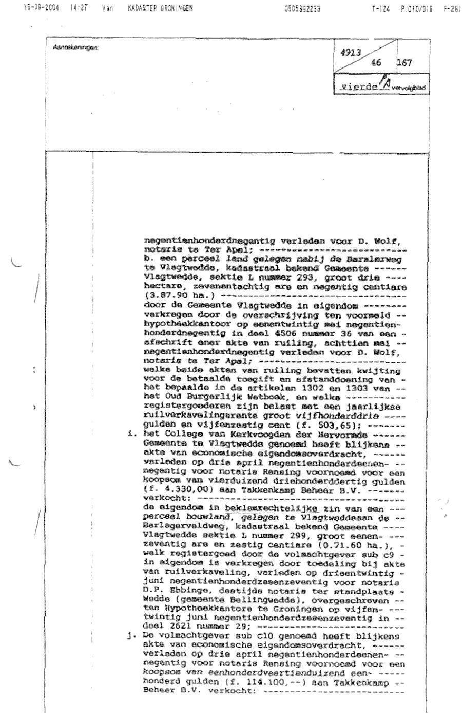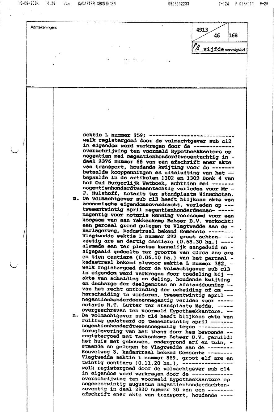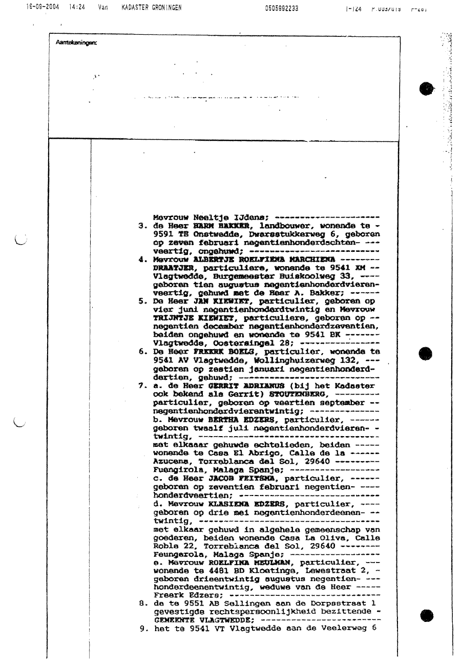 Afschrift van het Kadaster in Groningen m.b.t. perceel Vlagtwedde 1395, De Vennen 87