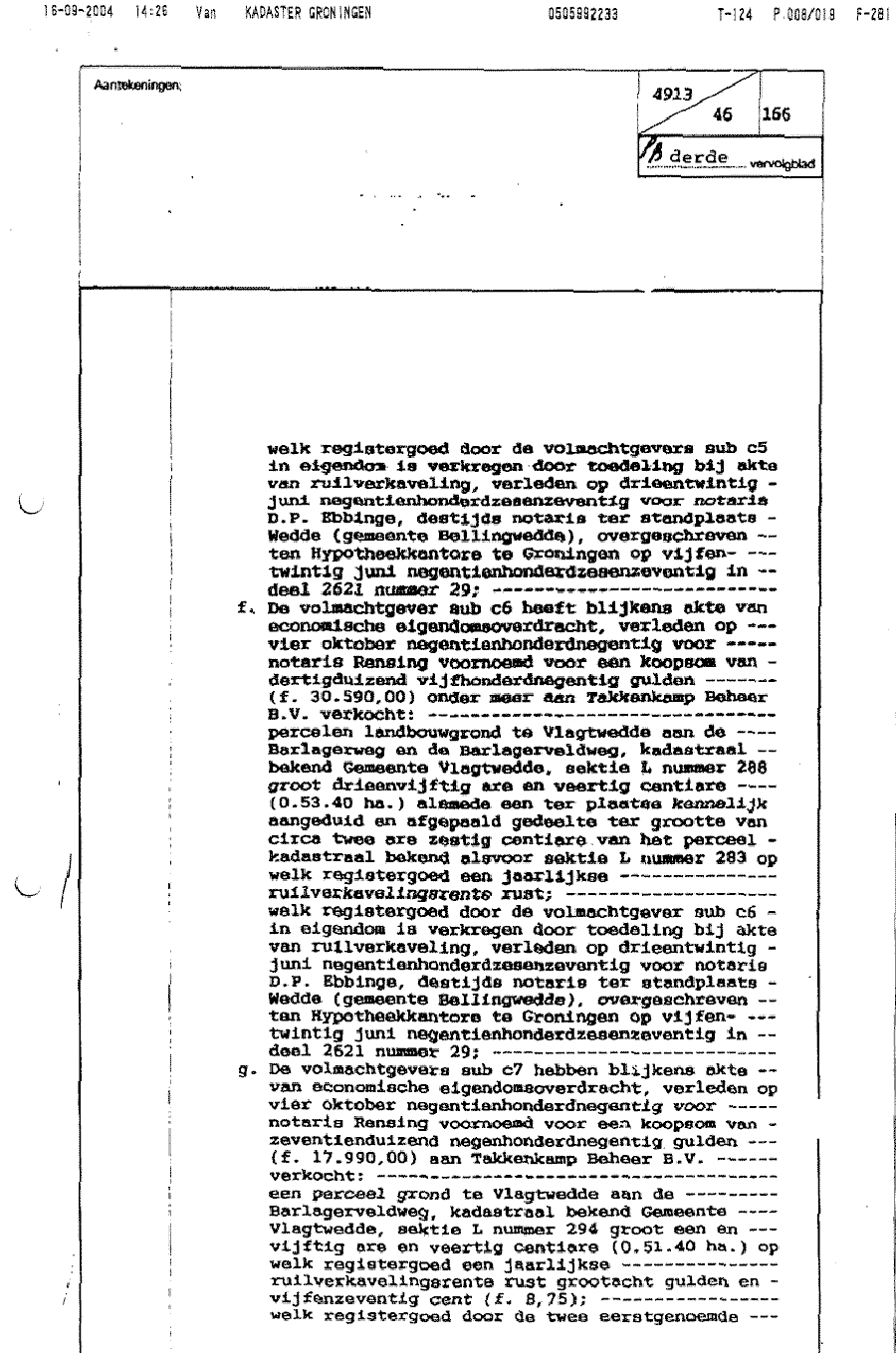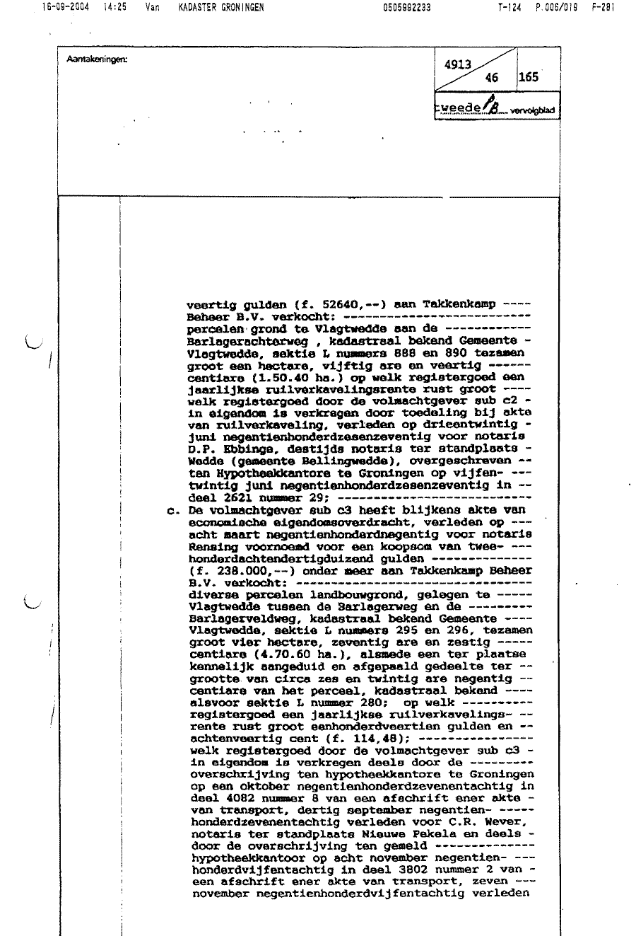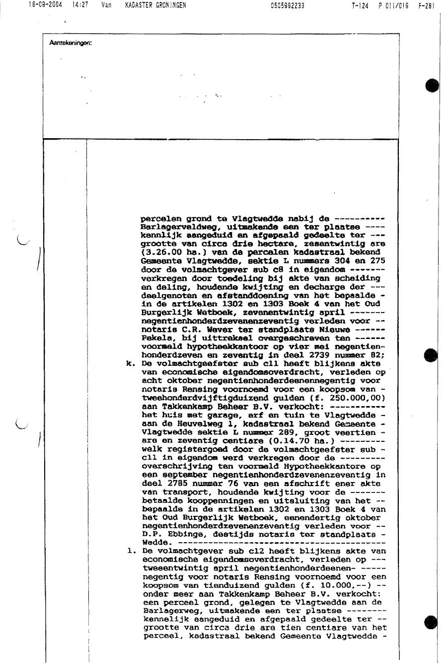 Notariële akte t.g.v. dhr. J.G. Takkenkamp als vennoot van Takkenkamp Beheer BV