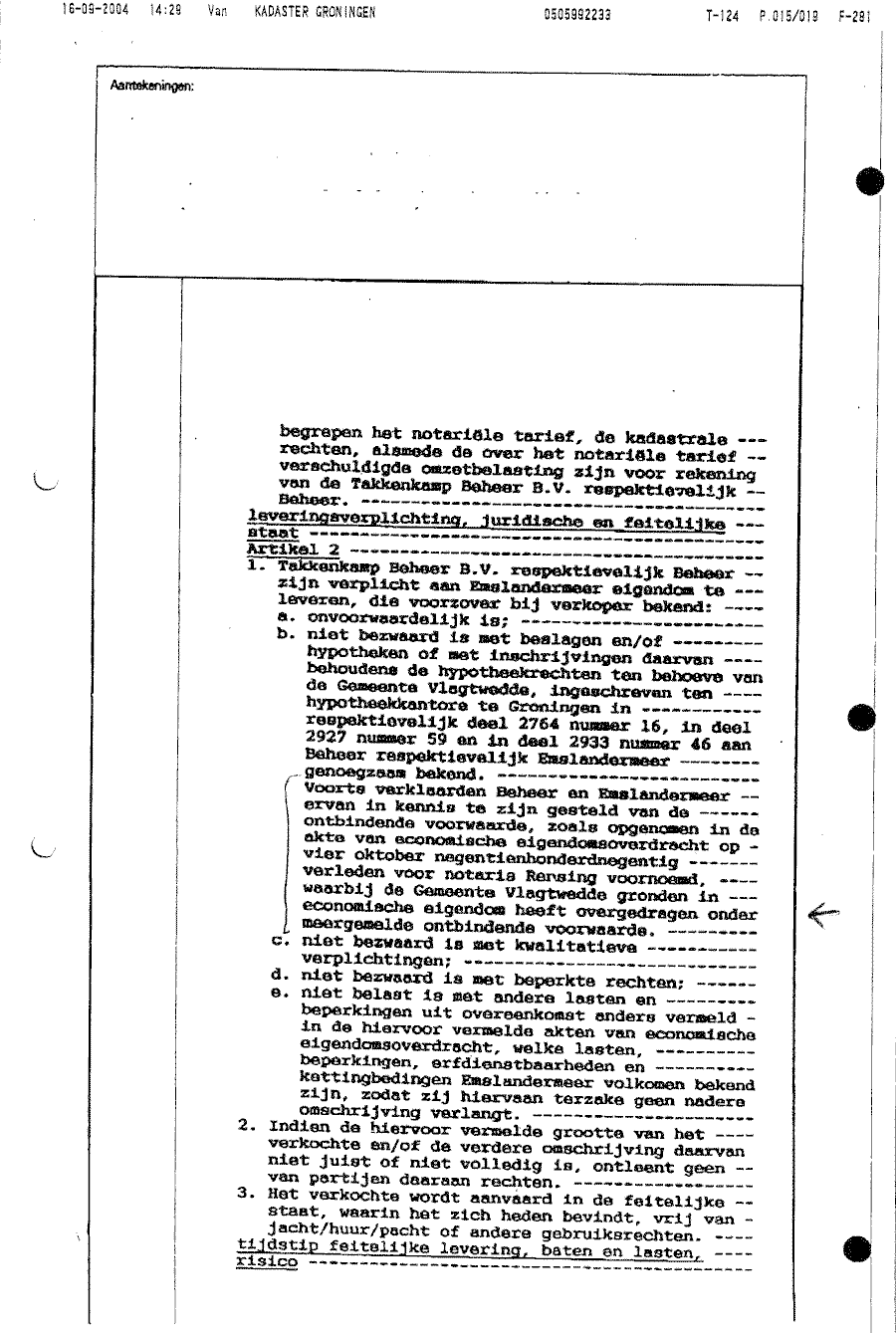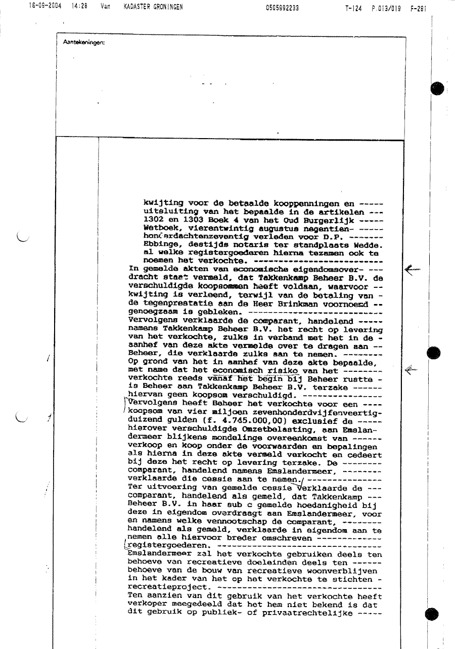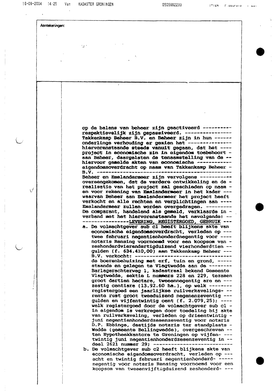 Koopcontract opgesteld door notaris Rensing t.b.v. Emslandermeer Beheer BV