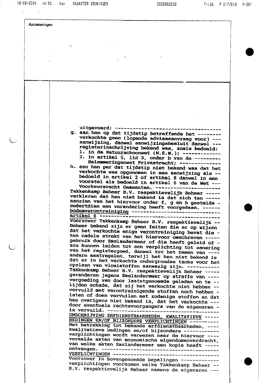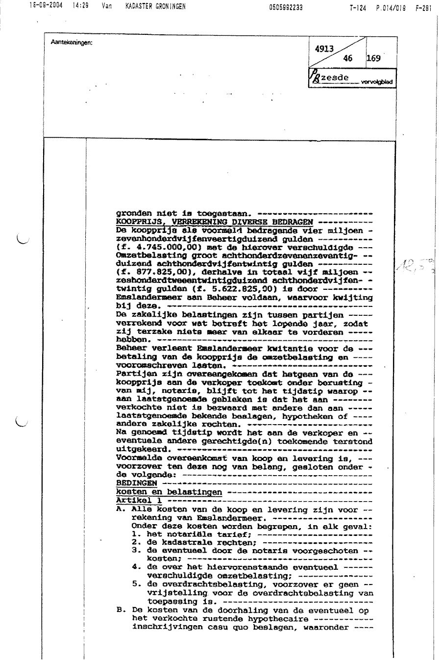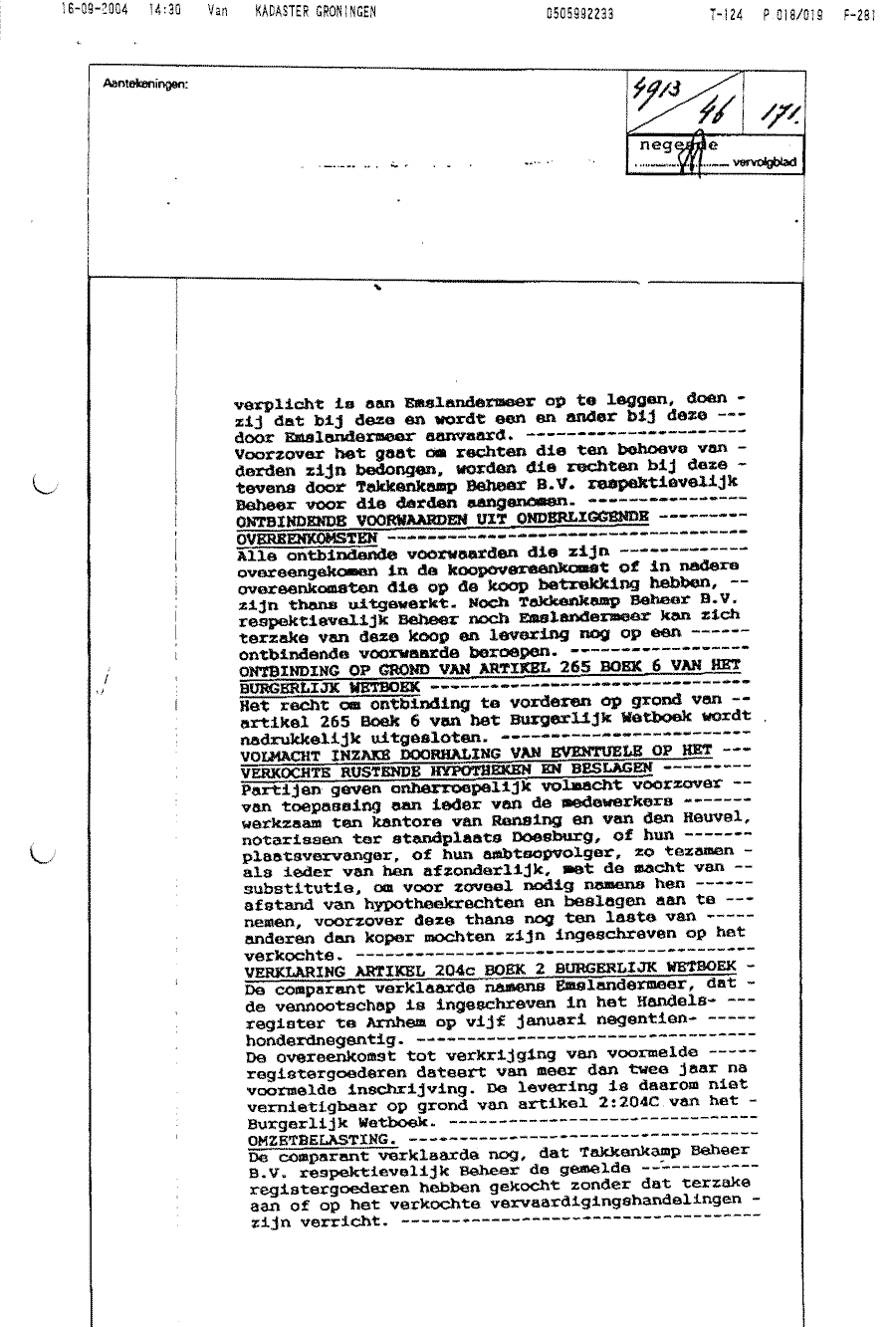 Koopcontract opgesteld door notaris Rensing t.b.v. Emslandermeer Beheer BV