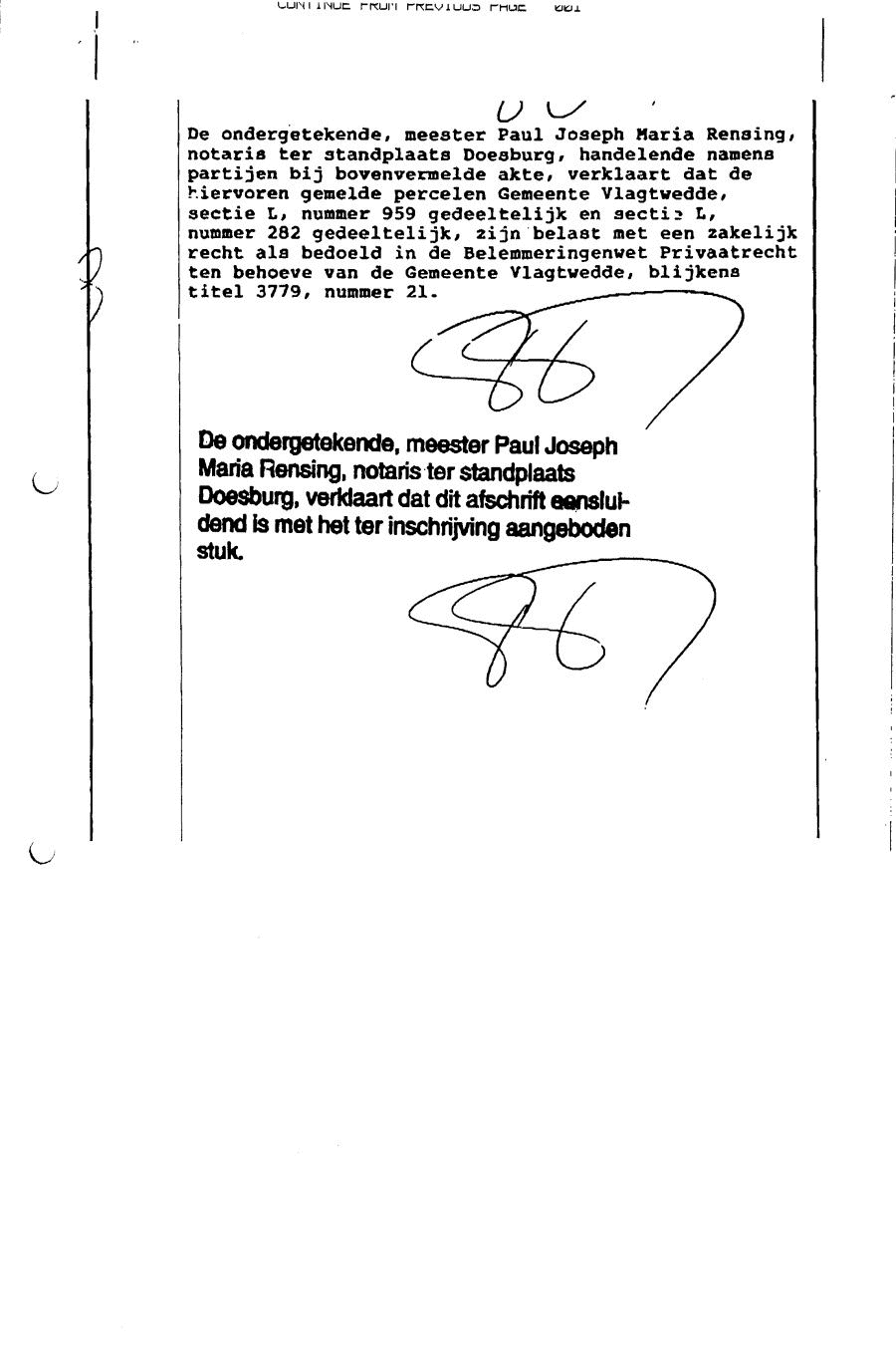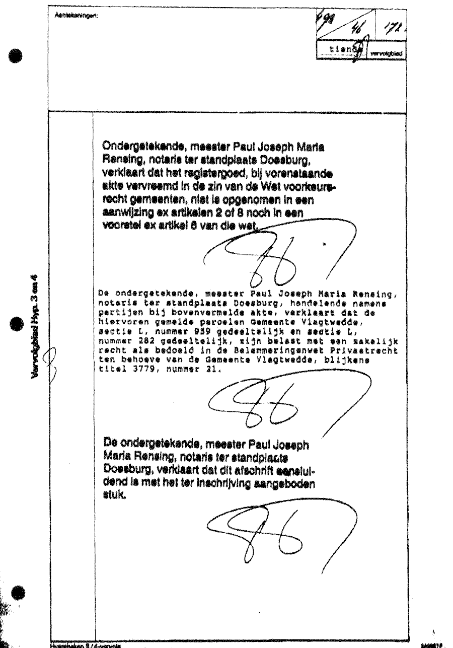 Eigendomsakte verleden bij notariskantoor, Doesburg, Rensing & van den Heuvel (27-12-95)