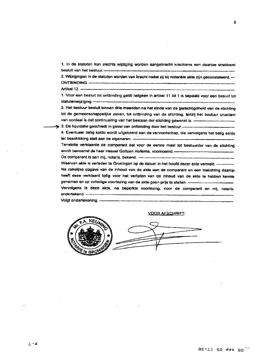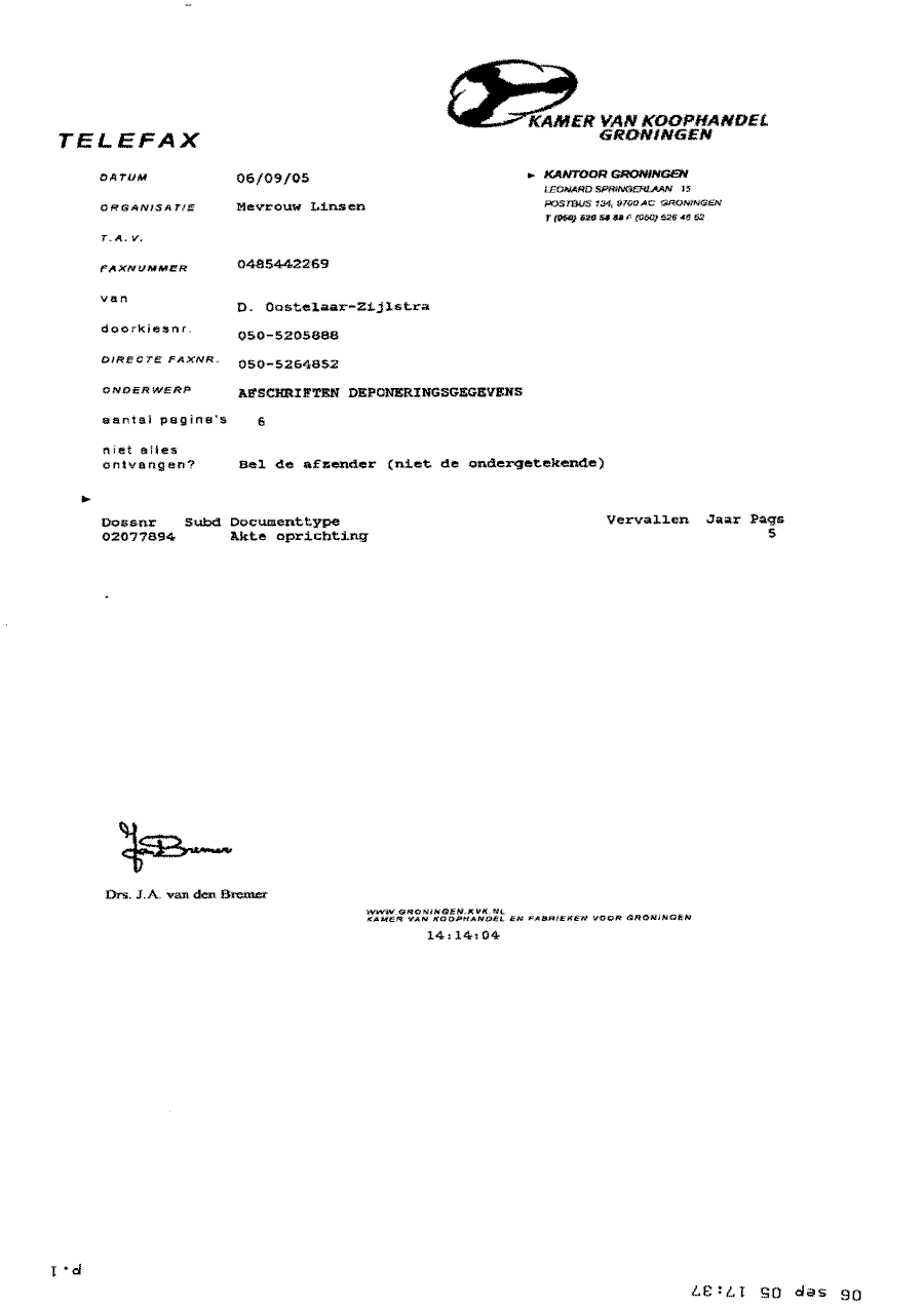 Afschrift van deponeringsgegevens bij de Kamer van Koophandel in Groningen