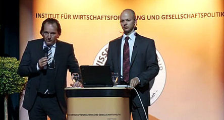 Hier is duidelijk te zien dat er grote verschillen zijn tussen de landen en per hoofd van de bevolking, om via een sleutelverdeling relatief eenzelfde garantieprestatie te verstrekken. Dat betekent dat rijke landen met een hoger inkomen per capita nominaal dus meer garantie moeten stellen dan landen met lage inkomens. Hoe die verdeling precies is opgesteld door de Europese Commissie is hier niet aangegeven. Opvallend is bijvoobeeld dat een land als Spanje een forse bijdrage moet leveren wanneer bijvoorbeeld Nederland om financiële steun uit het ESM-fonds van 700 miljard zou moeten vragen. Nog veel merkwaardiger wordt het, wanneer Spanje een bijdrage moet leveren aan de ESM-garantstelling om Spanje zelf te kunnen helpen aan de nodige financiële middelen. Het ijzersterke verhaal van de Baron von Münchhausen die zichzelf aan zijn eigen haren uit het moeras trok lijkt hier van toepassing. De verklaring voor deze regeling zullen wij nog even moeten afwachten. Parlementaire vragen hierover zijn meer dan opportuun. Een mogelijke oplossing voor de schuldenproblematiek die exponentieel groeit zonder tegenmaatregelen is misschien het voorstel van de Belgische Verdwijntruc. Om dat te begrijpen is de video van het congres van Andreas Popp en Rico Albrecht in hun presentatie laten zien.