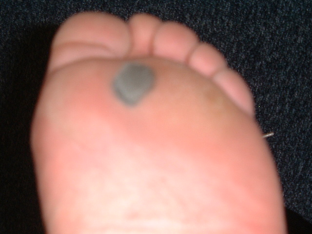 Blauwe plek en gescheurde enkelbanden op de linker voet en striemen van enkelboeien
