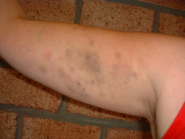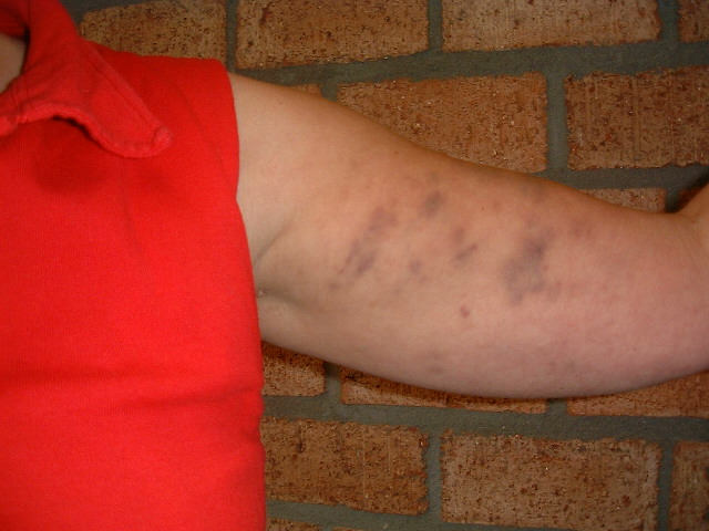 Blauwe plekken wegens grove mishandeling op de linker arm