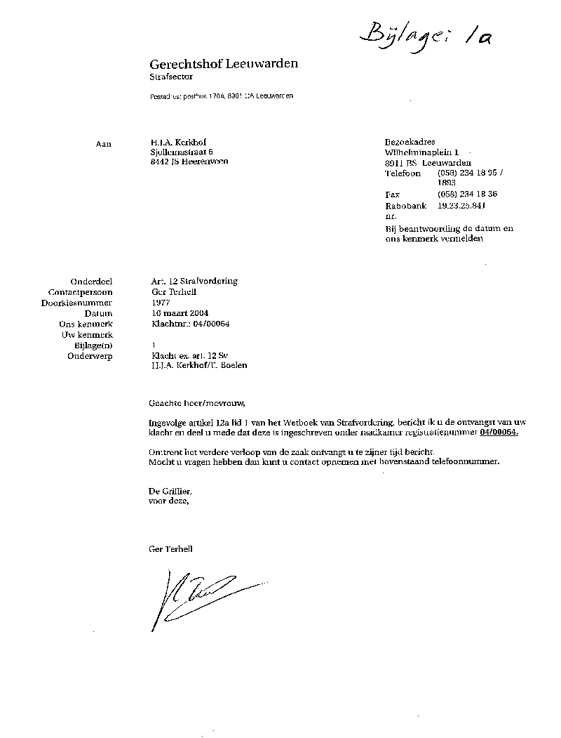 Oorspronkelijke 'Verzoek tot Strafrechtelijk Onderzoek' van 22 sept.'03