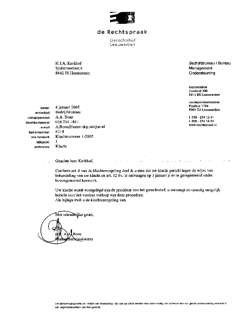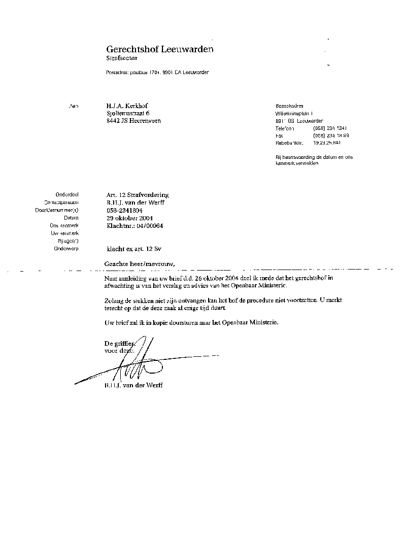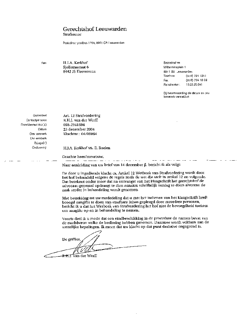Beroepschrift van Harry Kerkhof aan het Europese Hof in Straatsburg