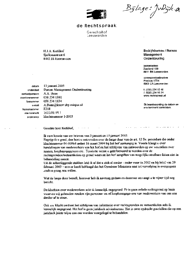 Brief aan de voorzitter van het College van Procureurs-generaal de Wijkerslooth de Weerdesteyn