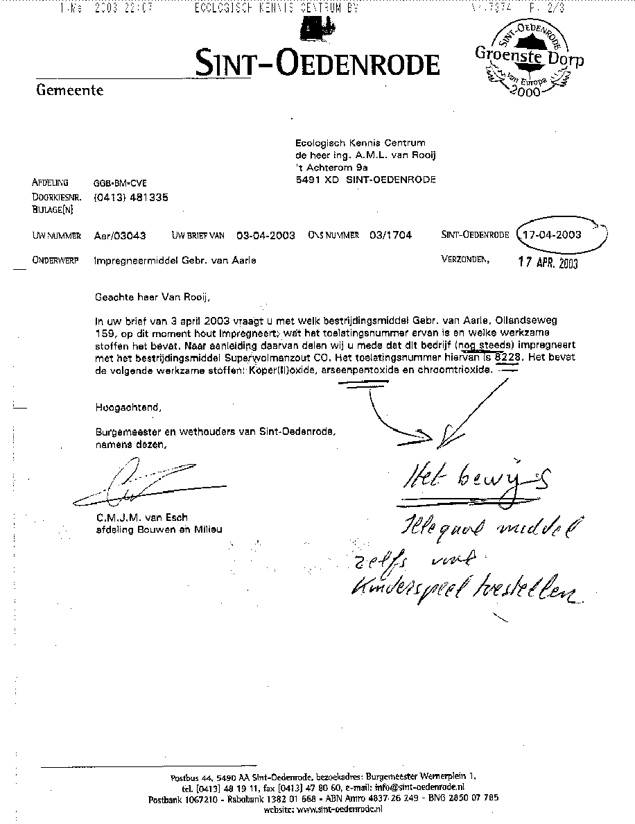 - dit met het oogmerk om burgemeester en wethouders en de raad van de gemeente Sint Oedenrode behulpzaam te zijn met het plegen van vele strafbare feiten middels de ruilverkaveling Sint Oedenrode en het nieuwe bestemmingsplan buitengebied "Sint Oedenrode 1997".