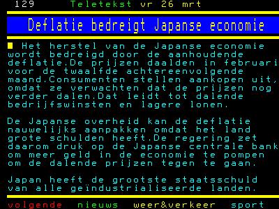 programma omvat echter geen noodzakelijke nieuwe infrastructuur, maar meer politieke projecten. Hierdoor zal het effect op de Japanse economie gering en slechts tijdelijk zijn. Tokio zit met de handen in het haar. De fouten in de structuur, die pijnlijk naar boven zijn gekomen, moeten hersteld worden. Maar er is geen tijd, want de problemen stapelen zich op. De kern van de economische crisis is de rotte financiële sector. De banken hebben door slechte management zoveel slechte leningen in portefeuille, dat ze geen kant meer op kunnen. Analisten schatten deze hoeveelheid op een totaal van 1400 miljard gulden. Voor nieuwe leningen kloppen de bedrijven nu tevergeefs bij de banken aan. Bedrijven kunnen nauwelijks investeren. Een jaar geleden had de overheid door beter toezicht op de sector een hoop leed kunnen voorkomen. Maar nu kan de economie een grote golf van nieuwe bankfaillissementen niet aan.