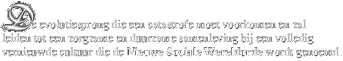 Het valt niet te verwonderen dat steeds meer mensen over onze toekomst zeggen: "de wal zal het schip wel doen keren", of: "na ons de zondvloed". Waarom gelooft niemand dat ter voorkoming van erger onze huidige cultuur of wereldorde moet eindigen, voordat wij aan een veel betere samenleving, dus aan de nieuwe wereldorde, kunnen beginnen?