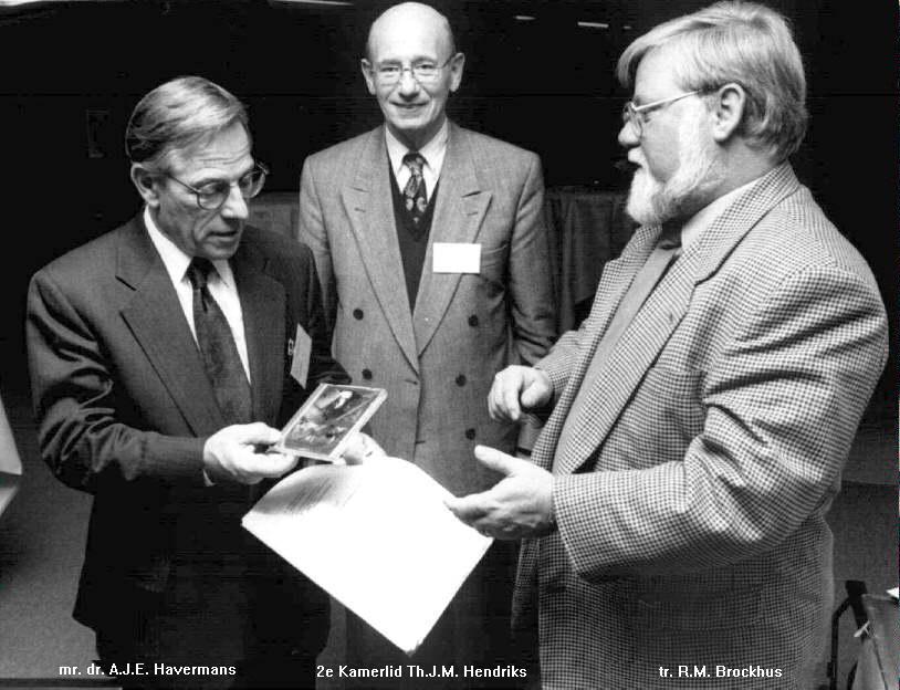 Ook de Voorzitter van de Algemene Rekenkamer mr. dr. A.J.E. Havermans ontvangt een exemplaar van de cd-rom die voor het vak maatschappijleer voor het middelbaar onderwijs is ontwikkeld. Studenten kunnen met deze cd-rom zonder telefoonverbinding oefenen met een simulatie van het internet.