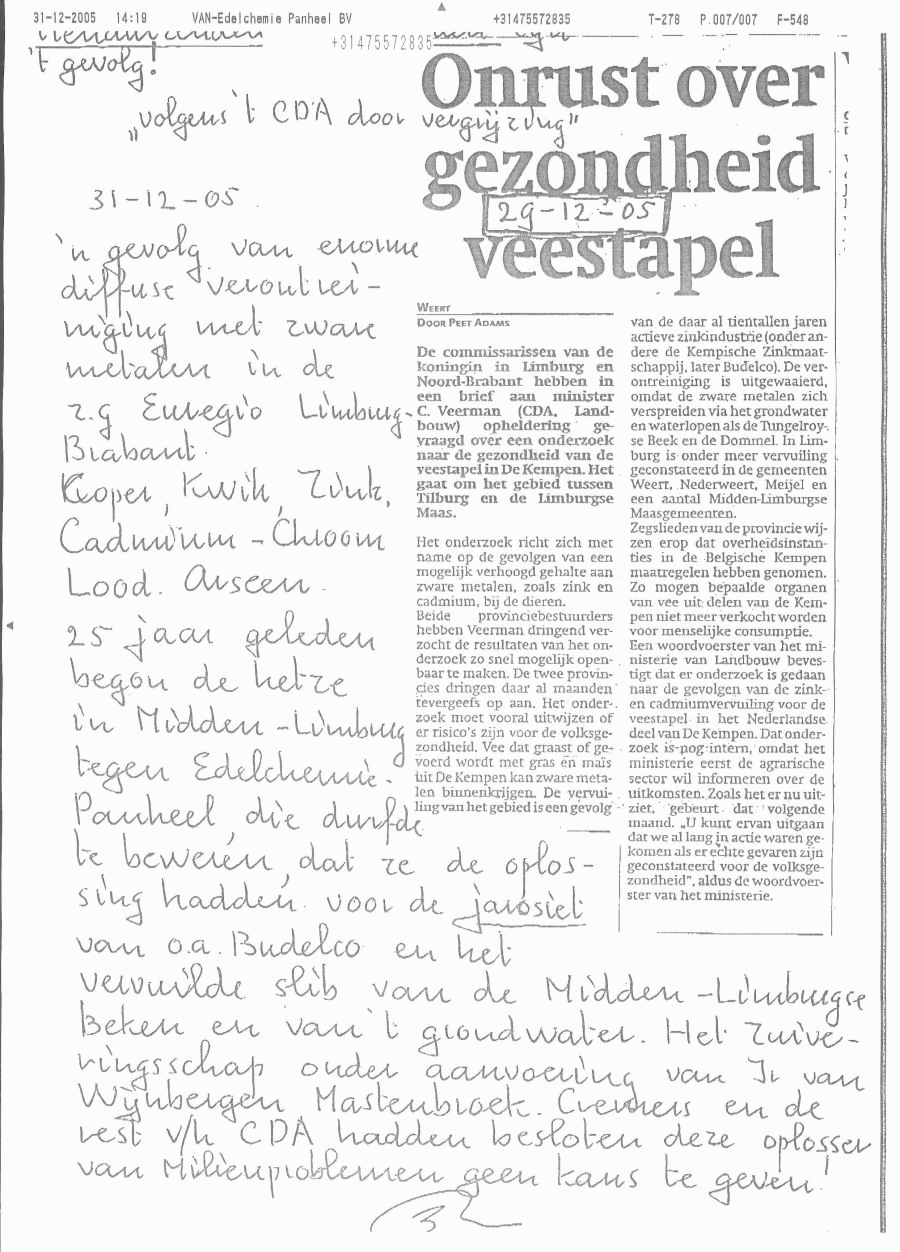 Brandbrief van ir. Nevels over overstorten in Limburg en vervuiling van drinkwater