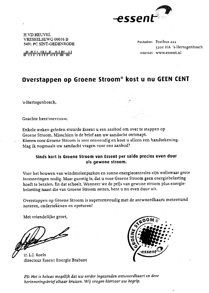 Plotseling uitblijven van de promotie van GROENE STROOMHet belazeren van de burgers gaat gewoon door.