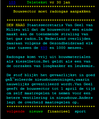 Vandaag staat in Dagblad de Telegraaf het navolgende artikel. Van Geel wil aanpak radongas, Alarm over straling beton. Maar eerst even dit: